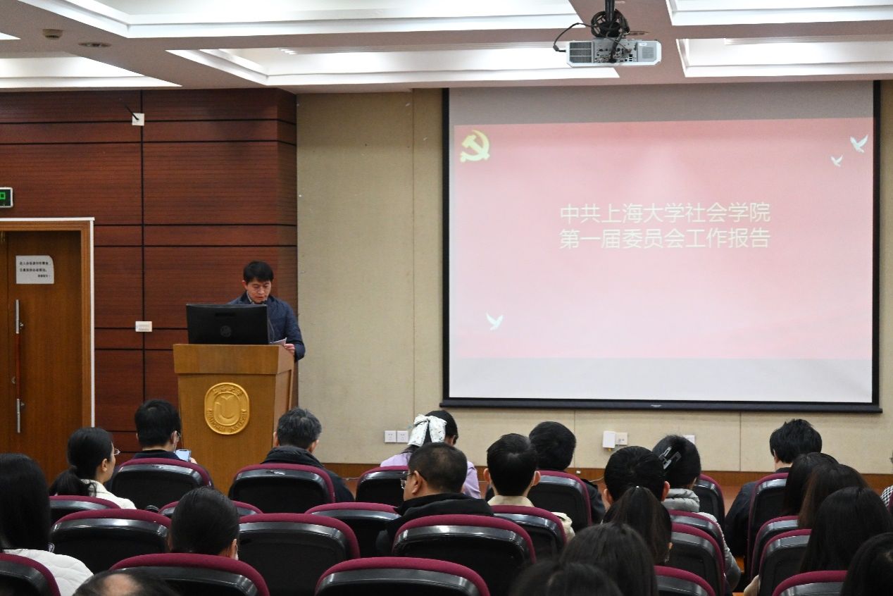 社会学院党委书记杨锃同志作了题为《凝心聚力心向党,团结奋进新征程——以高质量党建引领高质量发展》的工作报告,报告从强化理论学习,加强党的全面领导;围绕党建工作,健全体制机制;加强组织建设,提升组织力度;凝聚人心共识,推进社会学学科发展四个方面回顾了学院党委的工作。同时,从基层党组织凝聚力,师生员工积极性发挥不足;重点工作的谋划还不够,统筹谋划的工作能力有待提高等方面,阐明了目前面临的挑战。未来,学院党委将不断加强党建引领,充分发挥党建力量;加强思政教育,凝聚共识谋发展;加强制度建设,提升治理水平,紧密结合学院和学科建设的中心工作,不断推进学院事业高质量发展。经审议,与会党员通过了第一届党委工作报告。