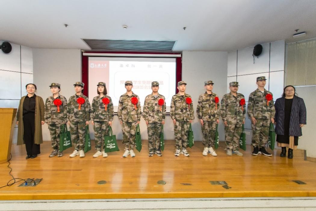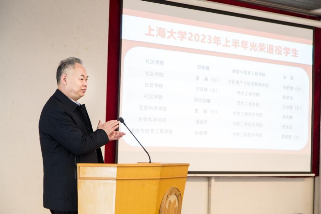 活动在庄严的国歌声中拉开序幕,彭章友宣读退役复学学生名单。随后,社区学院学生薛文爽代表退役复学学生分享自己的部队生活经历,毛建华、王杰为退役复学学生代表赠送学校纪念品。