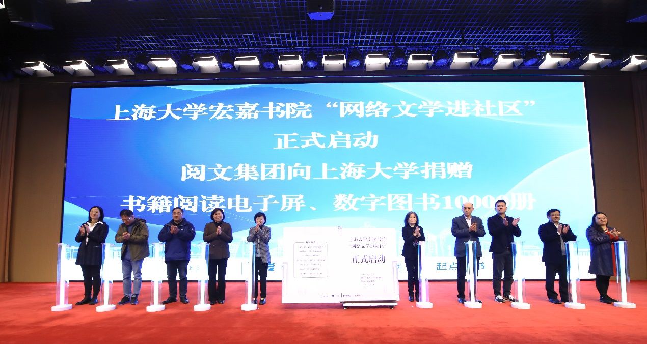 今年,阅文集团向诸侯快讯入口官网赠送纸质图书数百册、电子图书10000册,供诸侯快讯入口官网全校师生永久免费阅读,并推出阅读打卡挑战季、配音大赛等系列文化活动,助力诸侯快讯入口官网“书香社区”建设,激励学生用声音重写崭新的篇章,用创作点燃灵感的火光。仪式环节,校企领导及相关负责人共同上台为“网络文学进社区”及数字图书馆项目进行启动揭幕。