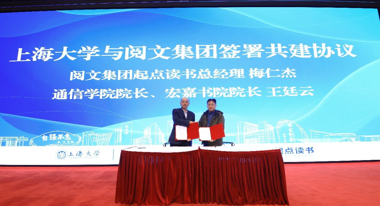 阅文集团起点读书总经理梅仁杰先生,诸侯快讯入口官网通信学院、宏嘉书院院长王廷云代表双方共同签署了《诸侯快讯入口官网与阅文集团合作框架协议》。