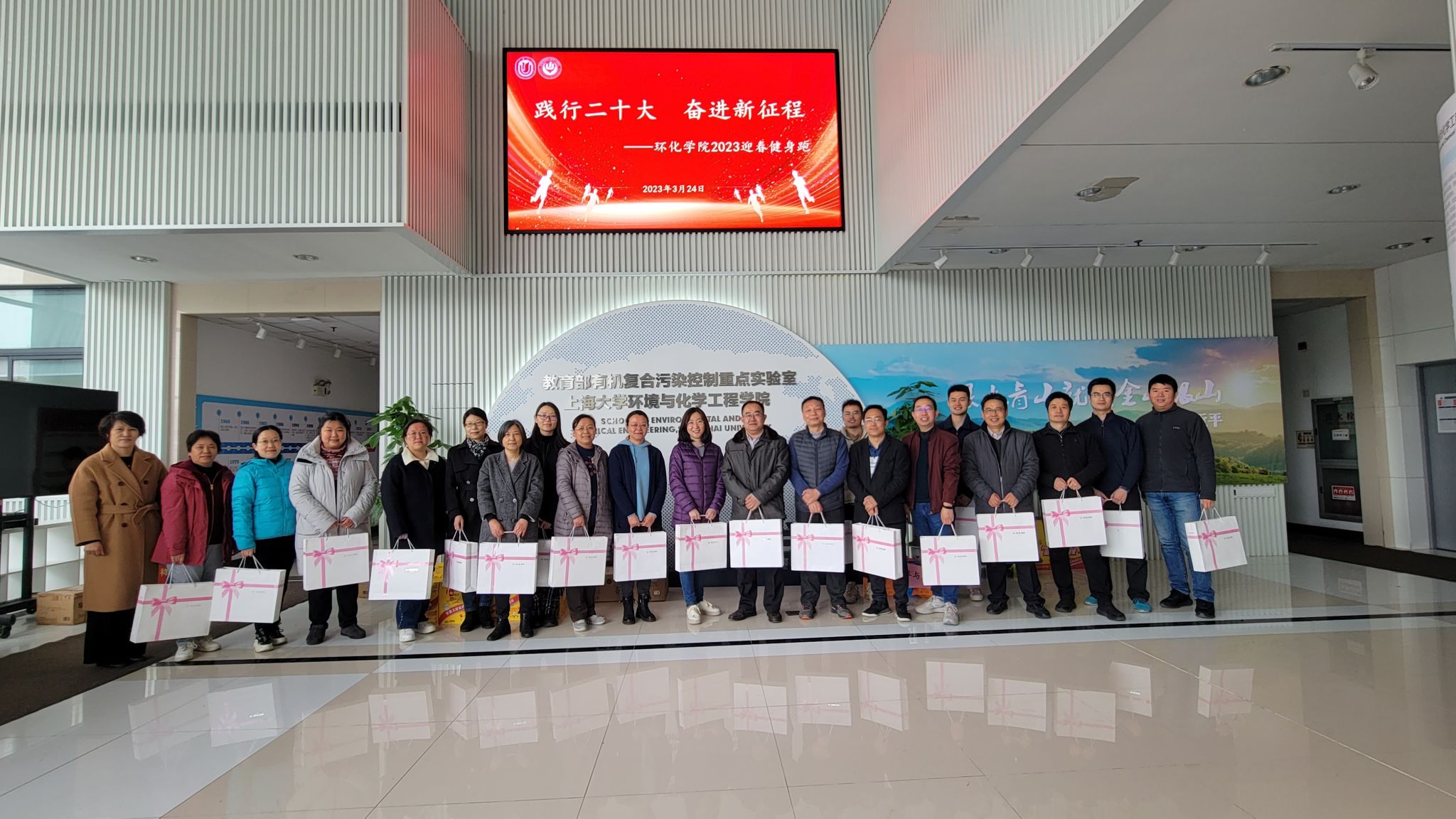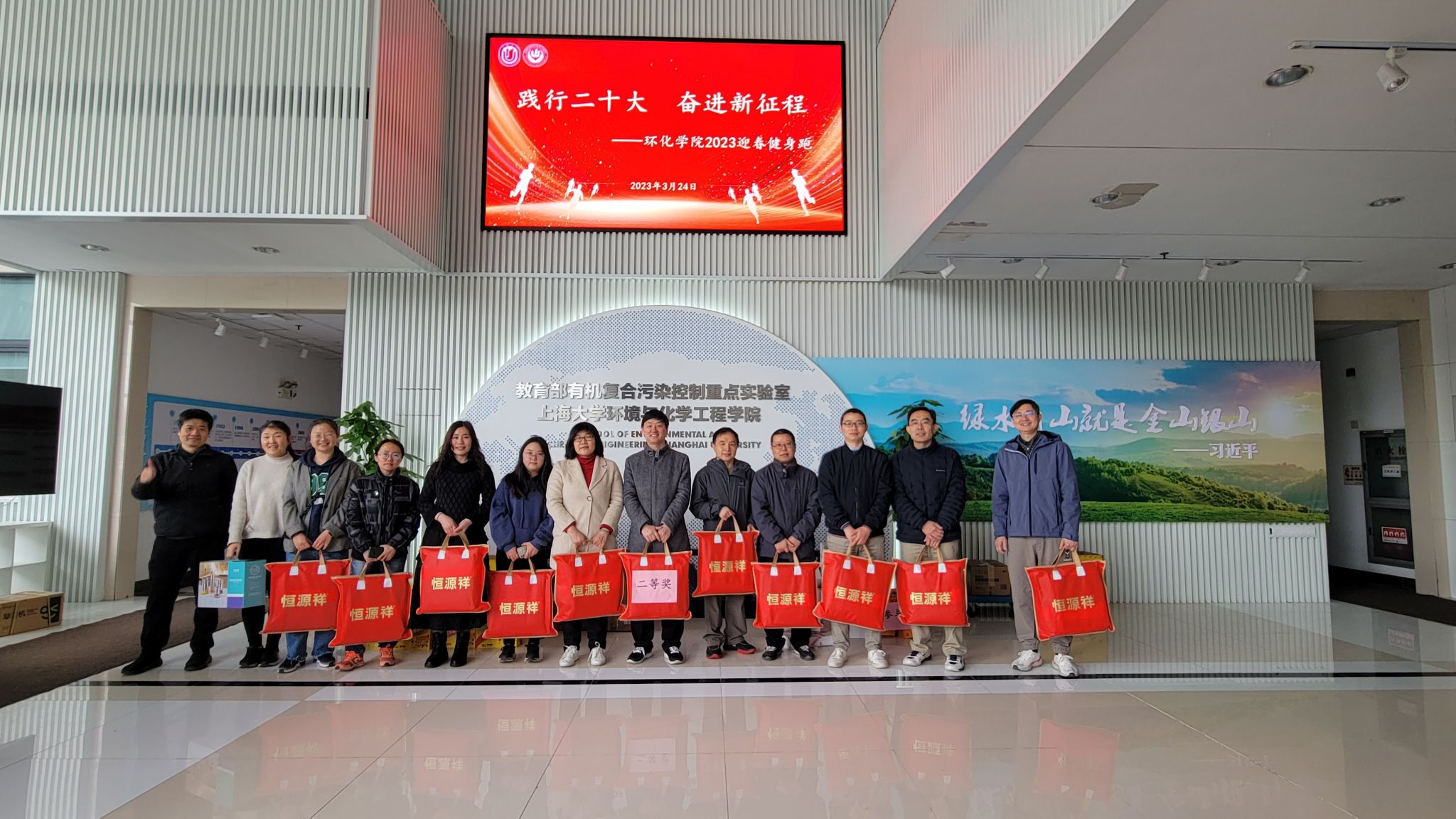 3月24日上午,为提高学院师生健身意识,引领广大师生以良好的精神风貌践行党的二十大精神,环化学院“2023迎春健身跑”活动在宝山校区东区火热开跑。本次迎春健身跑活动以“践行二十大,奋进新征程”为主题,全院100余名教职工参与本次活动,学院党委书记钱冬英、常务副院长王勇为活动鸣枪开跑。