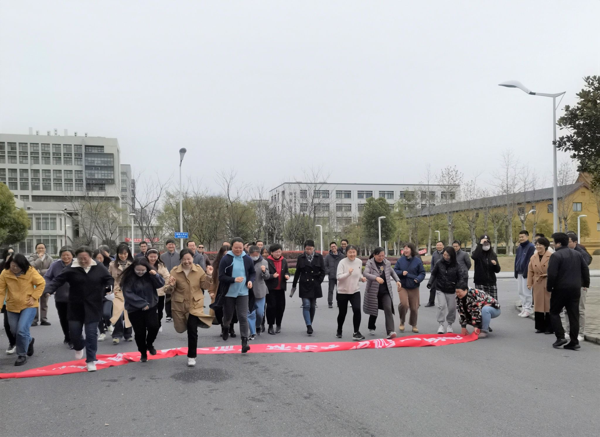 迎着初春的微风,老师们自环化大楼南侧路口出发,绕行18号楼、19号楼,沿着宁静的河畔一路向东,后经中庭花坛返回至环化学院大楼结束。奔跑途中,老师们共同感受春日风光、振奋精神面貌。