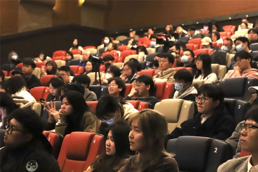 观影会最后进入提问环节,在场的同学们踊跃提问。有同学向曹郁老师提出了“如何流畅切换小空间与大场景”的问题,曹郁老师认为,除了镜头的流畅度和故事性之外,可以利用音乐进行辅助,吸引观众的感官,完成场景切换。除此之外,曹郁老师还向同学们解答了镜头叙事能力以及如何应对拍摄突发状况等问题。