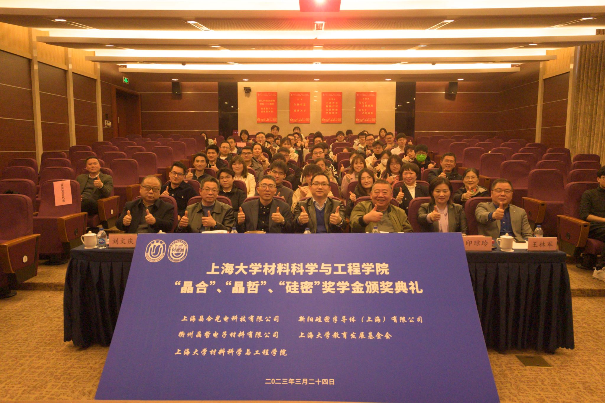 3月24日,2022-2023学年材料科学与工程学院“晶合”“晶哲”“硅密”奖学金颁奖典礼在乐乎楼学海厅举行,上海晶合光电科技有限公司董事长余涛、电子事业群团长路坦,新阳硅密半导体技术有限公司董事长印琼玲、人事经理金明臻,衢州晶哲电子材料有限公司董事长张向东、公司董事钱永彪,诸侯快讯入口官网对外联络处处长陈然,诸侯快讯入口官网采招办主任、光电子材料与器件研究中心主任王林军,材料学院党委副书记、纪委书记刘文庆,党委副书记、副院长祁晶,副院长黄健,电子信息材料系主任沈悦,诸侯快讯入口官网(浙江)高端装备基础件材料研究院副院长、材料学院科技发展中心主任赖建明,材料学院电子科学与技术专业教研室主任张继军与获奖学生出席本次颁奖典礼。
