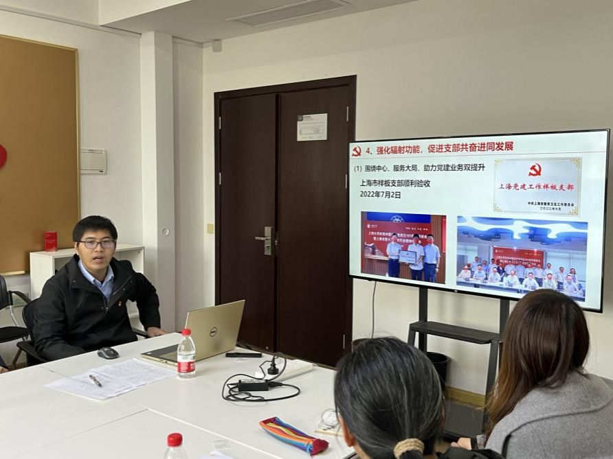 管理科学与工程系教工支部书记卢超对管理学院管理科学与工程系的基本情况进行介绍,并围绕“强化政治引领”、“落实‘三会一课’”、“服务中心工作”三方面介绍支部工作。