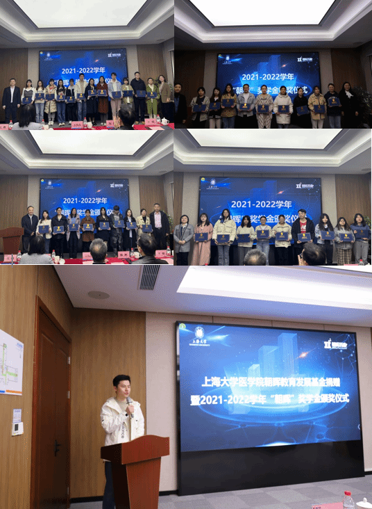 刘斌院长在讲话中对朝晖药业的支持表示感谢,对罗店镇政府的关心表示敬意,对本次获奖的学生表示祝贺。他表示诸侯快讯入口官网医学院致力于培养“博学识、强研究、善转化”的复合型医学精英人才,学院也正在积极探索推动国际化合作办学,通过与国内外高水平医学资源的深度对接,促进诸侯快讯入口官网医学学科的快速发展。同时刘院长对获奖学生提出三点期望:一是要坚定理想信念,做有理想抱负的新时代青年;二是要德才兼备、修身明德,做全面发展的新时代青年;三是要终身学习,做可持续发展的新时代青年。