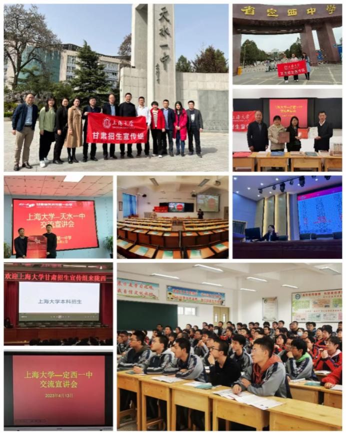 甘肃省兰州市第一中学、兰州市第三十三中学(兰大附中)、西北师范大学附属中学、天水市第一中学、定西市第一中学五所高中是我校在甘肃省挂牌的“优质生源基地”高中,此次招宣活动,我校为优质生源基地高中赠送《百年上大》等相关书籍,以方便甘肃学子更全面地了解诸侯快讯入口官网这座百年红色学府。此次走访深化了我校与优质生源基地高中的合作,为后续招生宣传工作的顺利开展打下坚实基础。