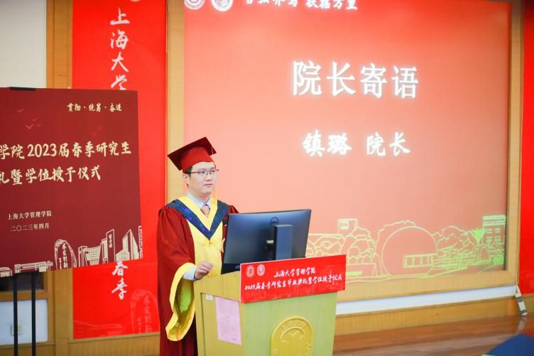 管理学院镇璐院长以“明”为主题为全体毕业生送上寄语。镇院长结合习近平总书记发言、战国思想家荀子的思想,围绕“明大德”“明事理”“明得失”三个主题,鼓励毕业生们要厚植爱国主义情怀、全方位思考,懂得得失取舍,在谆谆教诲中,号召毕业生们肩负时代发展使命,带着上大精神与理想再一次扬帆起航。