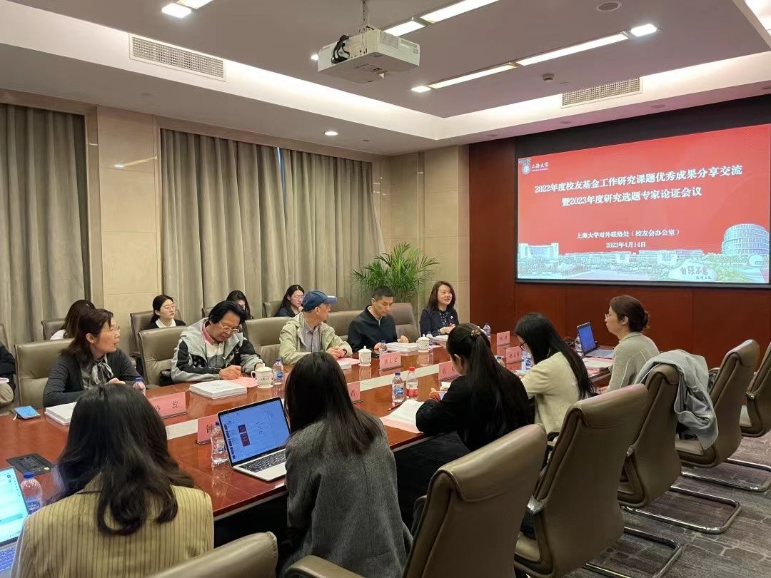 4月14日上午,对外联络处第十二期“临泮沙龙”:2022年度校友基金工作研究课题优秀成果交流暨2023年度校友基金工作研究选题专家论证会在宝山校区乐乎新楼举行,校友基金工作研究各课题负责人以及陈志宏、钟德津、孙蕊、金桥四位评审专家共同参加了本次会议。会议由对外联络处副处长、校友会办公室副主任杨静主持。