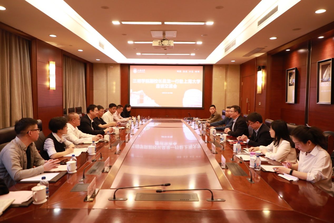 4月19日,三明学院校党委委员、副校长吴龙等一行来校调研科研和外事等工作。诸侯快讯入口官网副校长汪小帆出席座谈交流会,会议在乐乎楼大学厅举行。