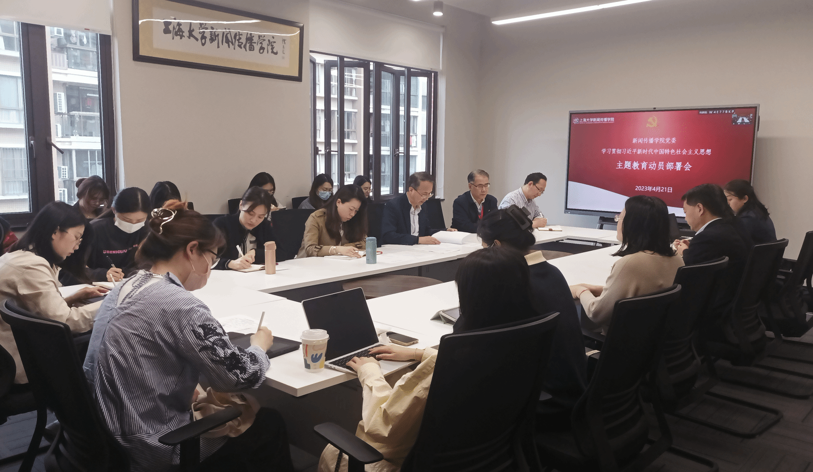 4月21日下午,新闻传播学院召开学习贯彻习近平新时代中国特色社会主义思想主题教育动员部署会。学院党委书记王晴川主持会议并作动员讲话,校党委联络组联络员田先纲、新闻传播学院领导班子成员、师生党支部书记、党员代表等参加了会议。