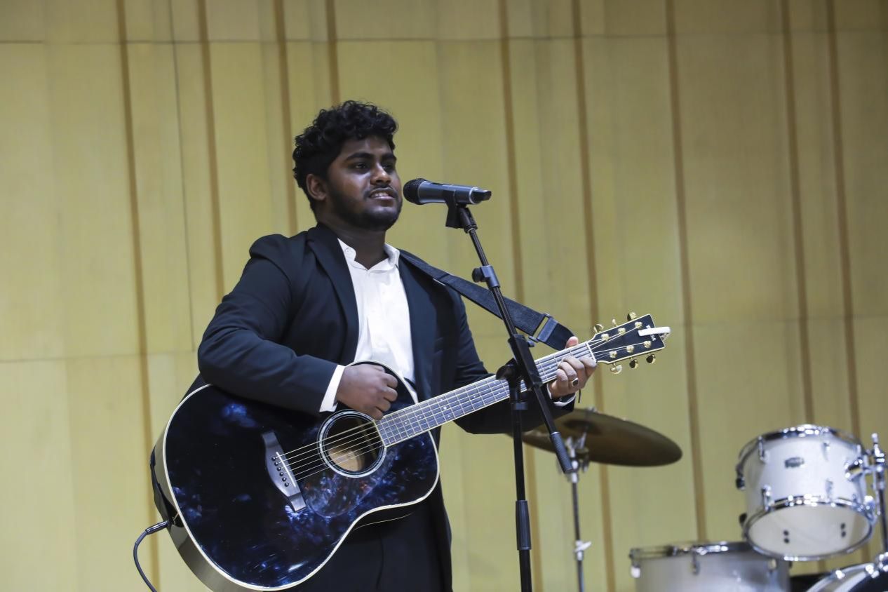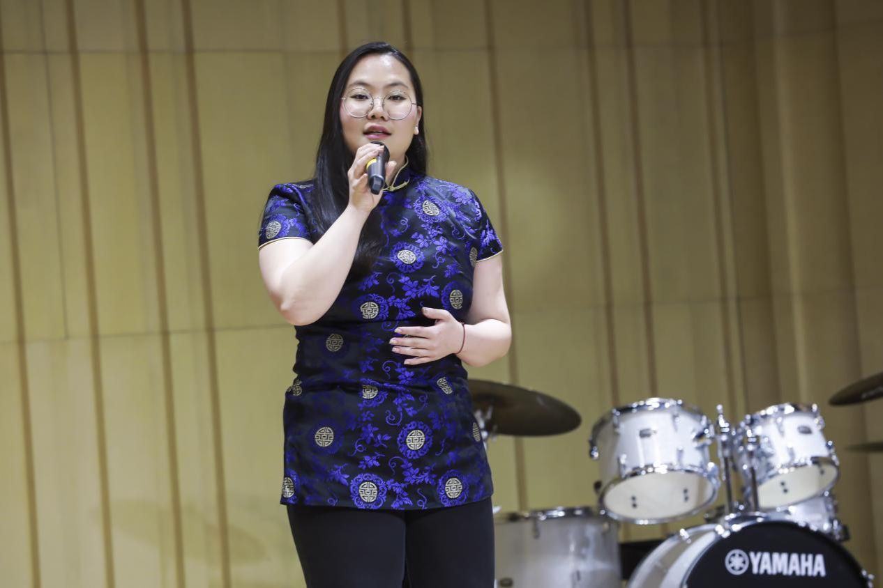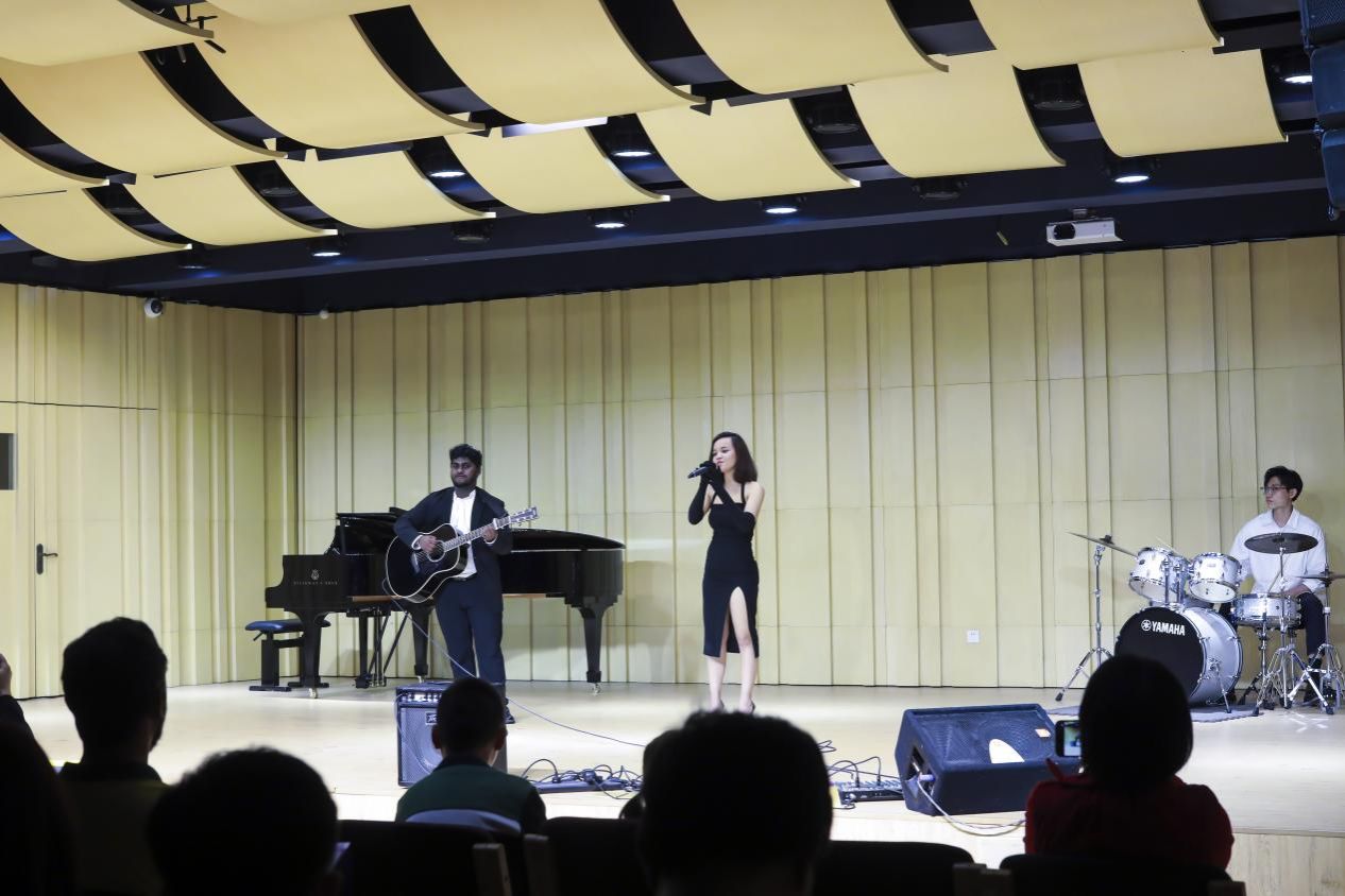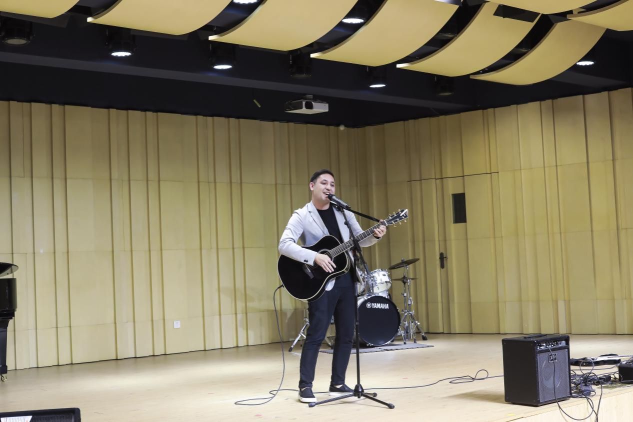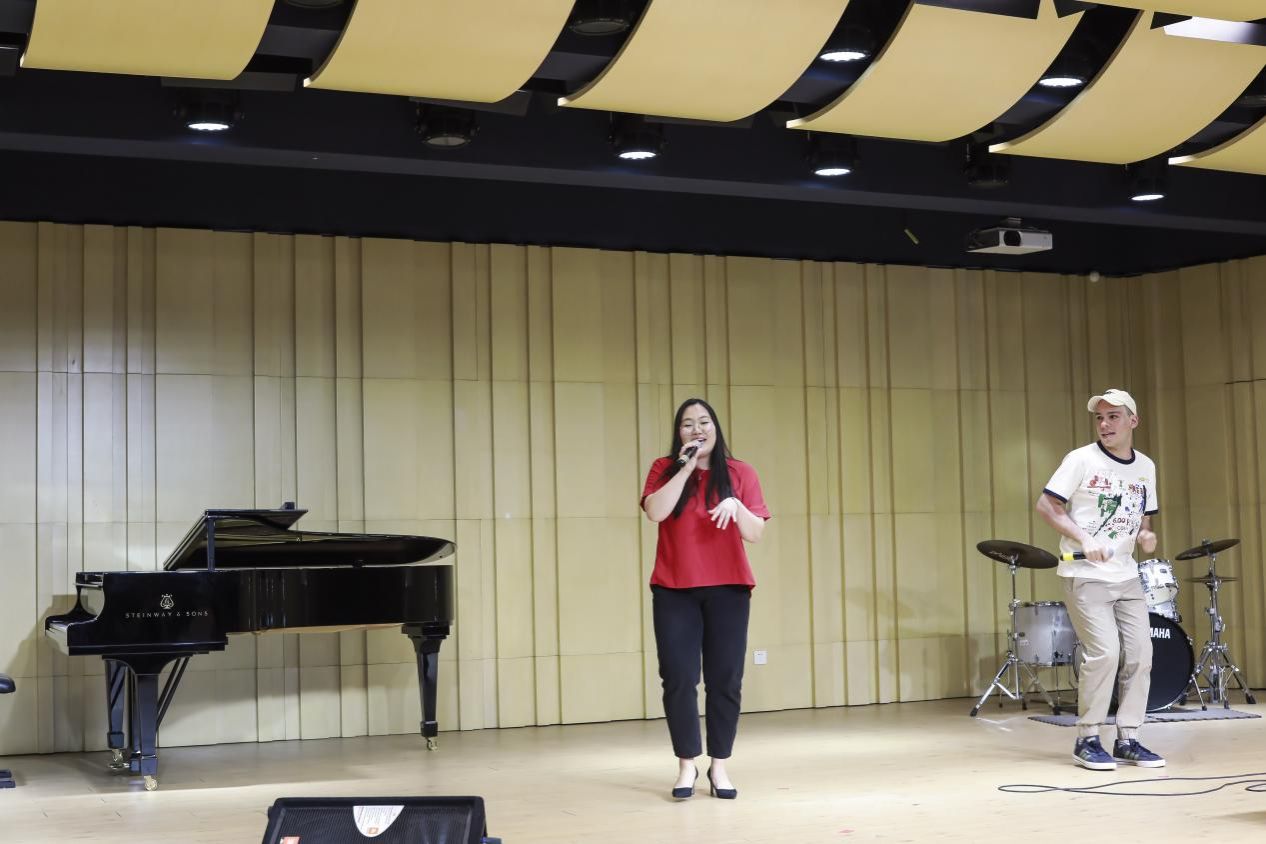 音乐会特别邀请到国际教育学院国际学生辅导员赵佩老师担任表演嘉宾,以一首《我和我的祖国》拉开了音乐会的序幕。