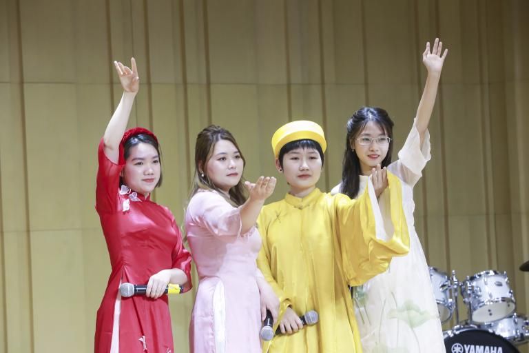 随后,来自越南、斯里兰卡、柬埔寨、尼泊尔、马来西亚、吉尔吉斯斯坦、印度尼西亚、蒙古、俄罗斯、乌兹别克斯坦、叙利亚、哈萨克斯坦等13个国家的国际学生们依次登台,演唱了各自国家特色的经典曲目,通过美妙的歌声和优美的旋律,传达了“文明互鉴,美美与共”的心声。
