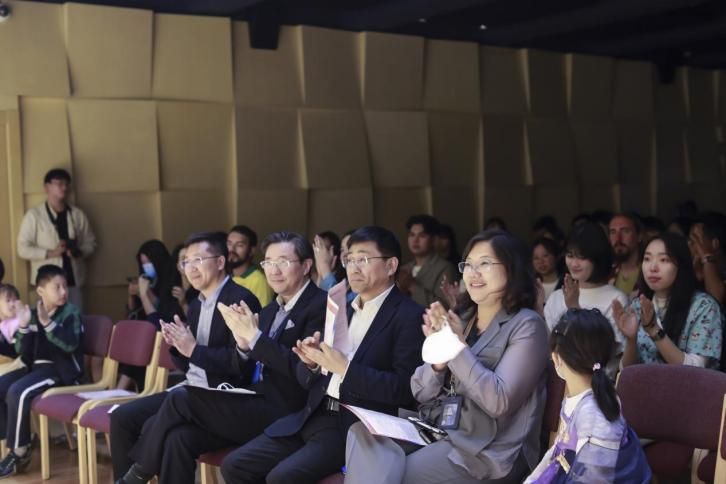 5月10日晚,知华导师“一带一路”音乐文化工作室组建的“海翼”国际学生合唱团在诸侯快讯入口官网音乐学院音乐厅成功举办了主题为“音乐无疆,美美与共”的各国文化音乐专场音乐会。本场音乐会是2023年诸侯快讯入口官网国际文化节的重要组成部分,将校园国际文化交流活动从白天的展台,延伸到了傍晚的舞台。诸侯快讯入口官网党委副书记欧阳华出席音乐会并致辞祝贺,音乐学院院长王勇,国际部党委书记王丽娜,国际部党委副书记、国际教育学院副院长陈秀猛,工作室指导教师许妍老师及中外师生到场参加。音乐学院党委副书记、副院长曹茜主持了本次音乐会。