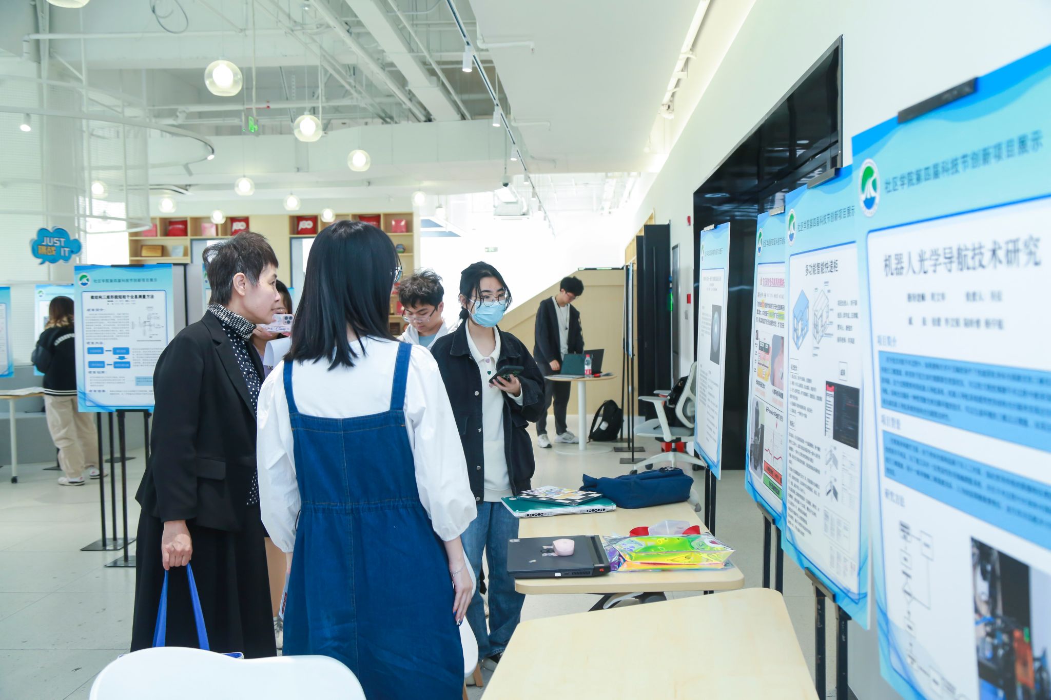 开幕式前,所有参赛项目在学生创新创业实践基地300大厅布展,为到场观摩师生介绍项目特色及亮点、项目成果及成效。
