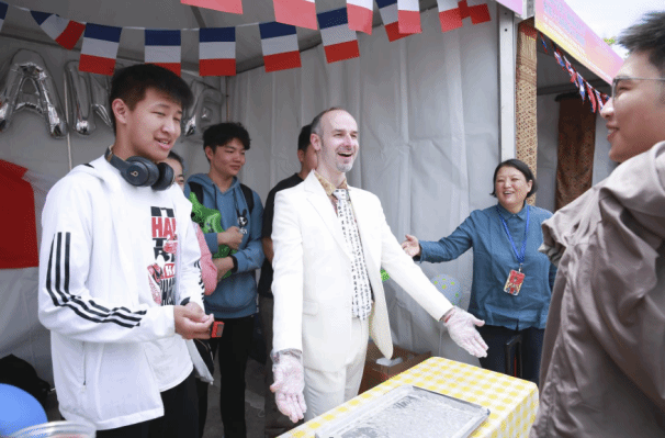 中外学生积极互动合影,留下了很多精彩瞬间。
