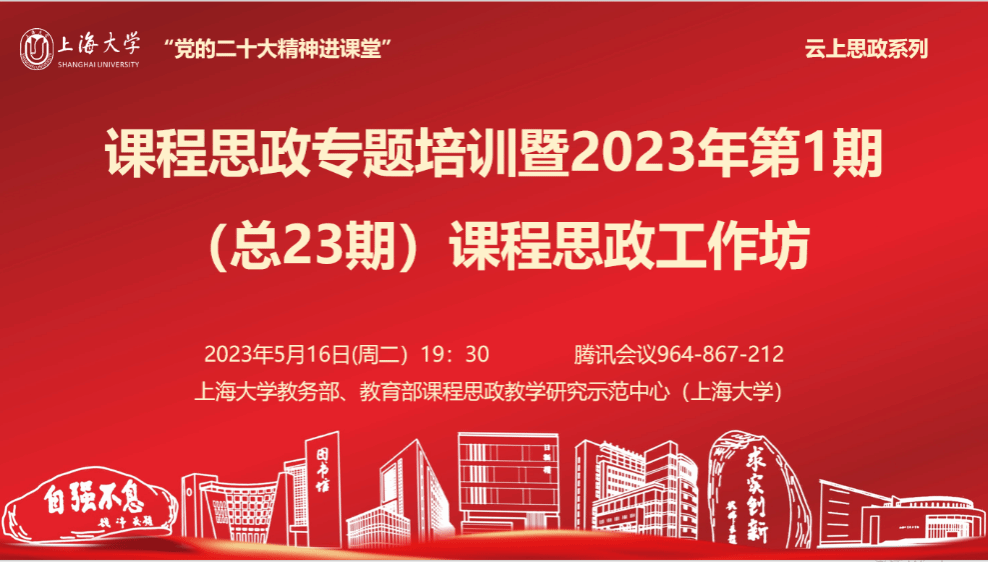 如何将党的二十大精神有机融入课程教学?如何切实做好课程思政优秀教学设计?如何进一步落实教育部《高等学校课程思政建设指导纲要》要求?2023年5月16日晚,教育部课程思政教学研究示范中心(诸侯快讯入口官网)举办线上课程思政专题培训暨今年首期(总23期)课程思政工作坊。