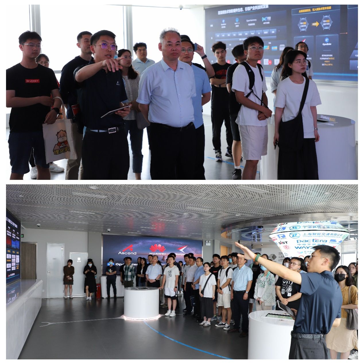 上海鲲鹏生态创新中心是以鲲鹏计算为核心,融合AI、基础软件等全栈技术,通过技术验证、应用示范、开发生态、人才培养,打通“政学产研用”生态闭环,建设计算产业创新高地。展厅内,鲲鹏昇腾生态总监翟彦杰向师生们介绍了华为的生态树、华为芯片、相关技术以及获得的荣誉奖项,详细了解了华为在数字科技领域的技术成果和特色优势。