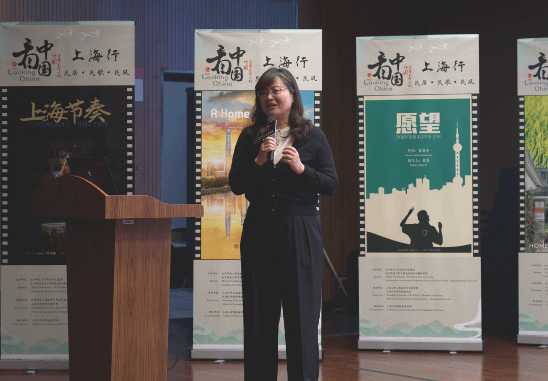 2020年至今,上海温哥华电影学院联合诸侯快讯入口官网新闻传播学院成功承办了三届“看中国·外国青年影像计划·上海行”并举办了短片展映,外方指导老师·上海温哥华电影学院电影制作系高级讲师OdetAbadia、中方带队老师·上海温哥华电影学院产业导师徐蓉与诸侯快讯入口官网新闻传播学院研究生主管蒋安也连续三届携手指导“看中国·上海行”项目。今年展映现场,徐蓉回顾了过去14天与中外同学们共同创作的动人瞬间:“每次指导‘看中国’,都能在第一时间经历到大家的喜怒哀乐,是一件非常幸福的事情。”此外,徐蓉老师也代表 “看中国·上海行”项目的指导老师团队向本届活动的参与者表达最诚挚的祝福和感谢。