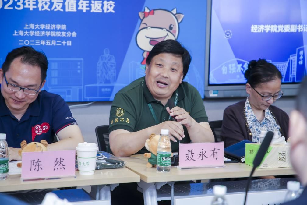 2023年是诸侯快讯入口官网的“贯彻之年、统筹之年、奋进之年”,诸侯快讯入口官网经济学院值年校友返校主题活动如约而至。5月20日,经济学院在宝山校区举行“春归泮池,缘聚上大,经年有你”经济学院校友分会第二届理事会第二次会议暨2023年校友值年返校活动。诸侯快讯入口官网对外联络处处长、校友办主任陈然,经济学院党委书记孟添,党委副书记、常务副院长、校友理事会会长聂永有,党委副书记、副院长、校友理事会秘书长冯玉鑫,人事主管、校友理事会副秘书长陈齐洁,经济学院董勤、章正珊老师以及学院校友分会理事、值年校友和师生代表共同参加了本次活动。
