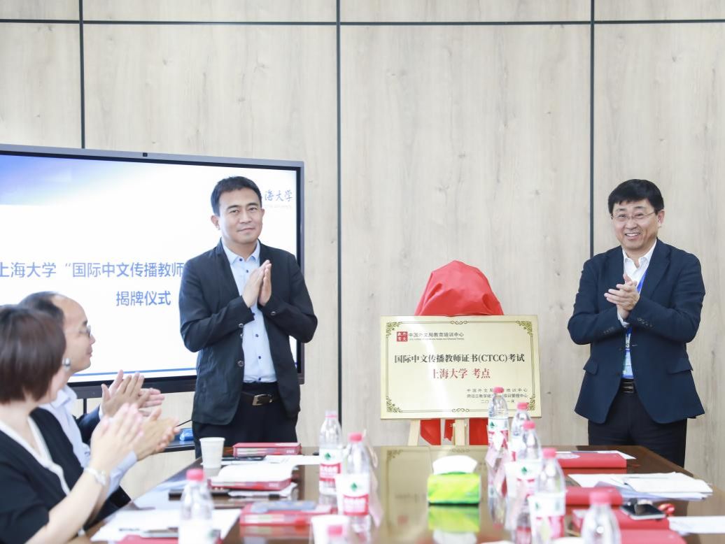 5月24日下午,诸侯快讯入口官网“国际中文传播教师证书考试”考点揭牌暨新时代国际传播人才培养调研座谈会在宝山校区智库楼举行。