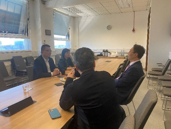 6月7日上午,代表团一行访问利兹大学,与利兹大学常务副校长HaisuiYu院士进行深入会谈并签署校际合作备忘录。双方表示两校作为长期合作伙伴,在科学研究、人才培养等诸多领域开展了合作,后续将进一步通过两校联合,优势互补,重点推动自动化、机械工程、历史学、创意写作、工程物理等领域合作。
