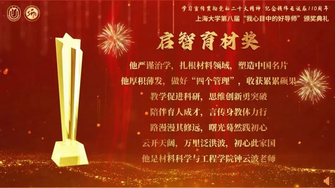 “如果说优秀的人是站在巨人的肩膀上,那我愿意做那个巨人,支持他们的成长。”“启智育‘材’奖”获得者材料科学与工程学院钟云波教授曾说,“自己有很多学生都比自己优秀”,他提出四组关键词:选择、交流、支持、鼓励。秉承着“育人为本、德育为先”的教育理念以及“德育一体化”的育人理念,导师应助推教育改革和人才发展,促进教育传承与文化传播,实现教育工作从“育分”到“育人”的蜕变。