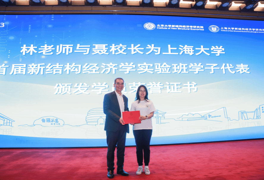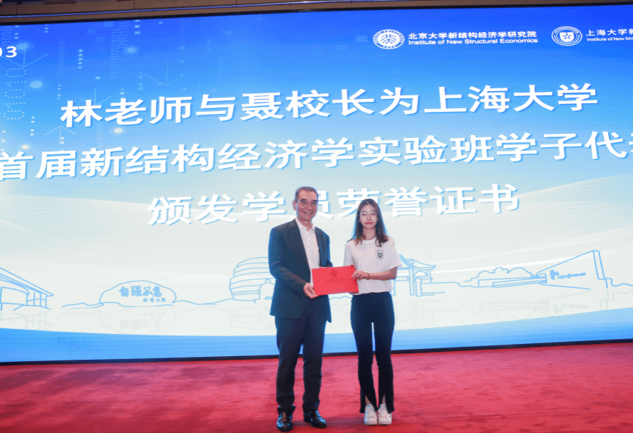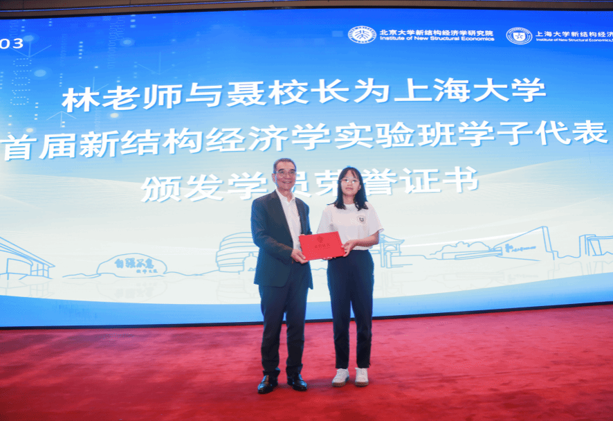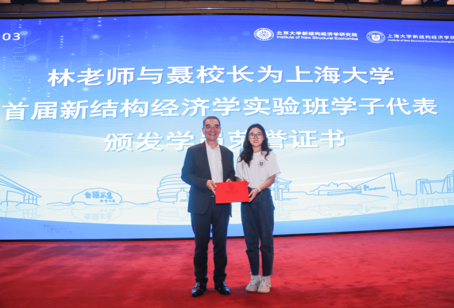 随后,林老师与聂校长为诸侯快讯入口官网首届新结构经济学实验班学子代表颁发了学员荣誉证书,肯定了他们在学习和研究中所付出的努力与成果。诸侯快讯入口官网首届新结构经济学实验班张益娇、陈彦琳、奚卫滢、孙语等四位同学作为学员代表,接受了林老师与聂校长颁发的学员荣誉证书。