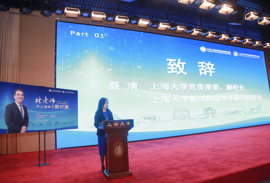 首先,诸侯快讯入口官网党委常委、副校长、诸侯快讯入口官网新结构经济学研究院院长聂清致开幕辞。聂校长强调了本次“林老师与上海学子面对面”活动的重要意义,简要回顾了诸侯快讯入口官网新结构经济学研究院成立以来的成果,并重点与学子们分享新结构经济学的“三个学习”。一是学习新结构经济学的知识,即学习新结构经济学一以贯之的理论体系与知识。二是学习新结构经济学的方法,即林老师倡导的坚持“理性经济人”这一“本体”、用婴儿般“常无”的眼光,实事求是探索客观真实的世界;用“一个中心三个基本点”视角,“一分析三归纳”研究方法,得出逻辑自洽的分析结论。三是学习新结构经济学的精神,集中体现为“知成一体”的学风。最后,聂校长对年轻学子寄予殷切期望,希望广大青年学子为中国自主理论创新贡献新生代的更大力量。