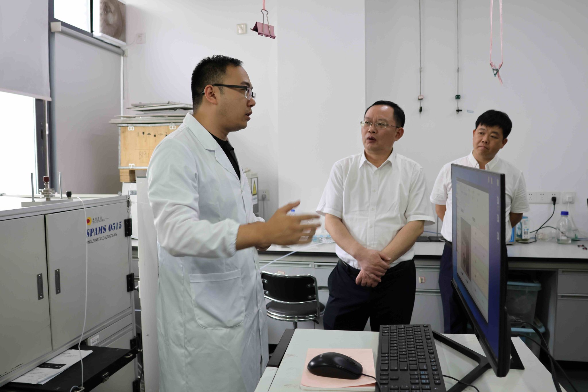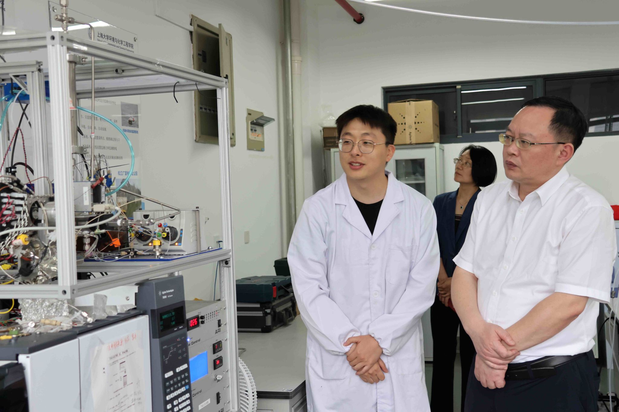 座谈会前,漆海云一行参观了学院大气污染防控实验室、质谱研发实验室、新能源电池研发实验室等,了解各实验室的概况与研究方向,并对环境监测技术、新能源技术等进行了现场调研与交流。