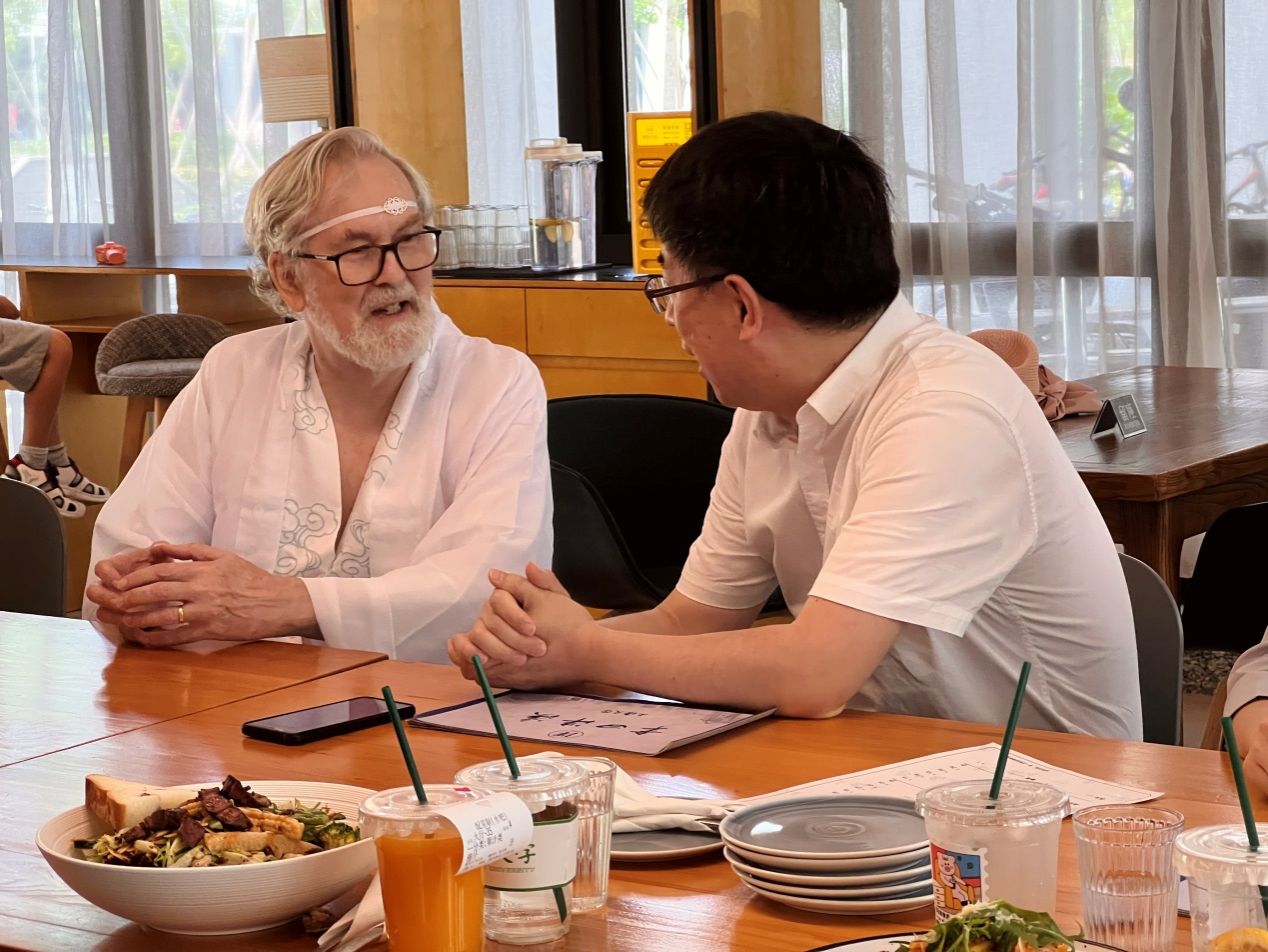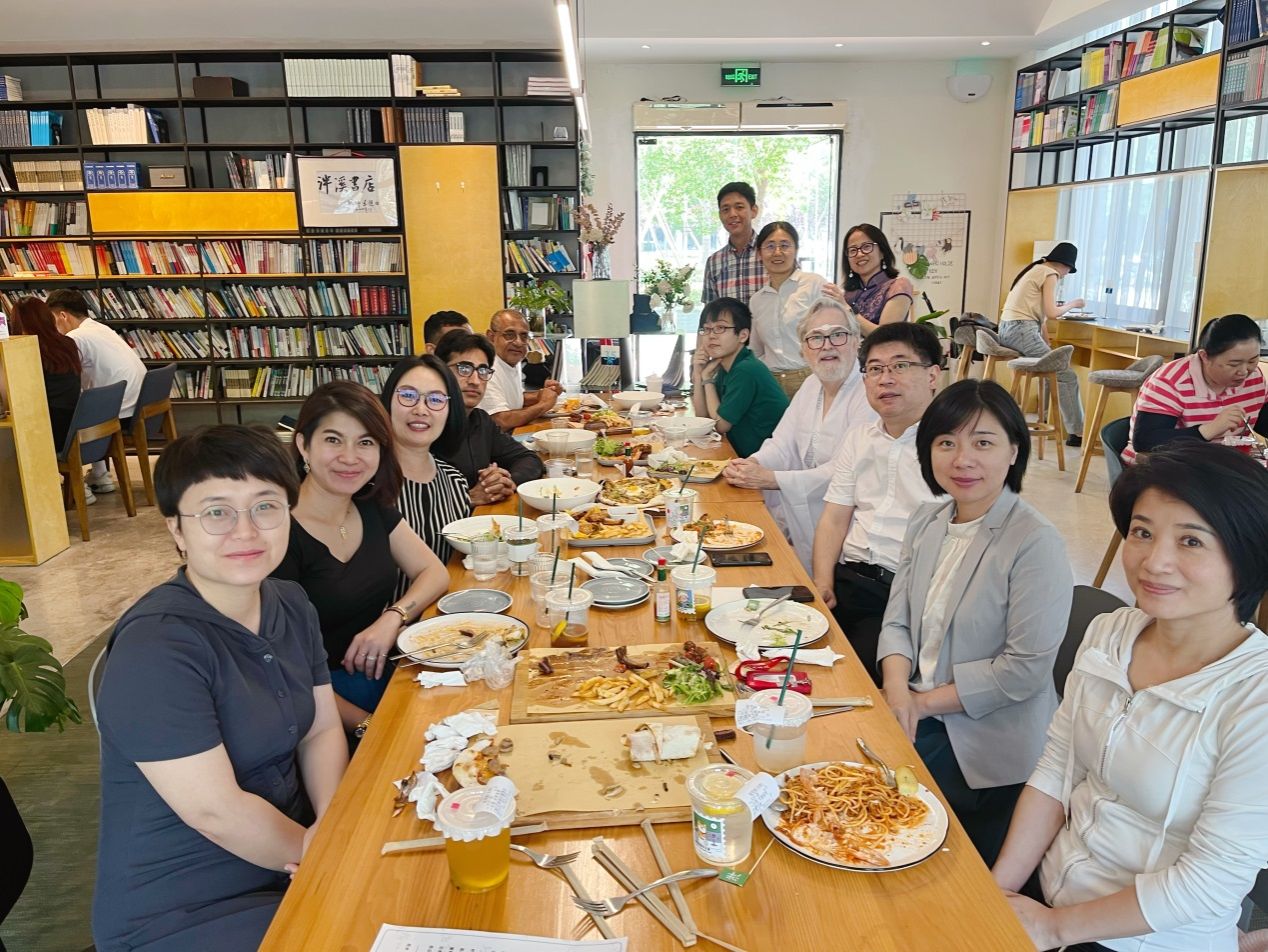 之后,外教们参观了宝山校区土木楼二楼的“小林荫”木廊亭,并与木廊亭构建者舒展老师深入交流。木廊亭充分展现了我校师生对低碳建筑和可持续发展的理念构思与实践探索。对中外建筑的生态概念和文化呈现外籍教师们展开了热烈讨论。