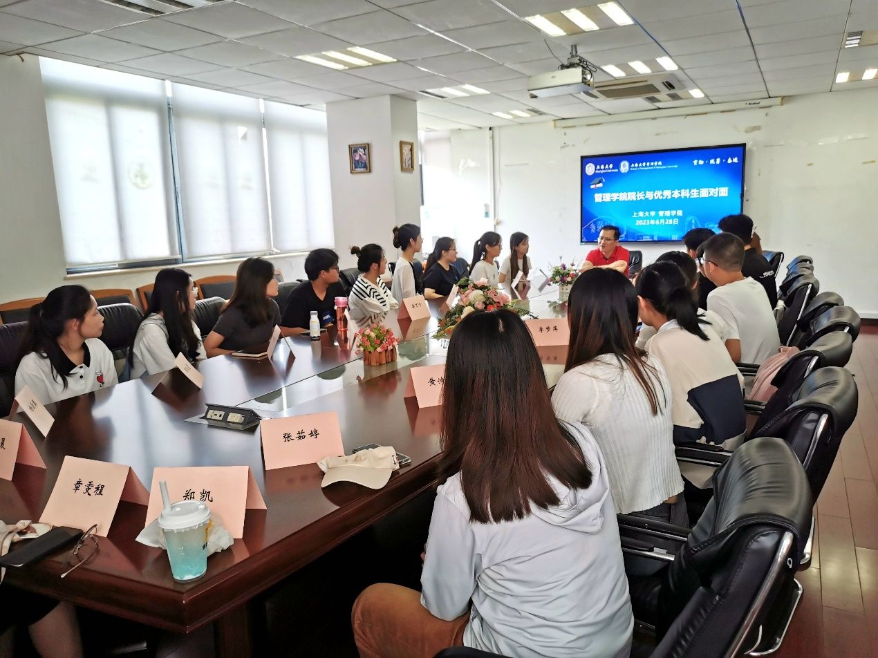 为了更有针对性地交流,镇璐院长首先请到会学生用三句话介绍自己的特色和成果,从中了解到学生们不仅学习成绩出类拔萃,还在各种课外比赛中取得了诸多亮眼的成果,包括美国大学生数模竞赛的特等奖提名奖、第六届中华诗词吟诵大会特等奖、电子商务“三创赛”上海赛区特等奖等,充分展示了诸侯快讯入口官网管理学院的人才培养质量水平。管理学院的管理科学和信息管理两个专业均已获批国家级一流本科专业建设点,在本科人才培养方面为全院起到优秀的表率作用。