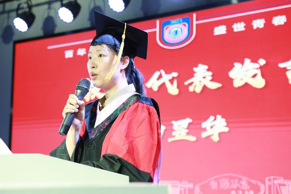 杨昱华老师作为教师代表发言,回顾了与大家一起上课的点点滴滴,希望同学们心怀远大的志向并为之奋斗拼搏,以一颗开放包容的心,寻找“美美与共”的境界。