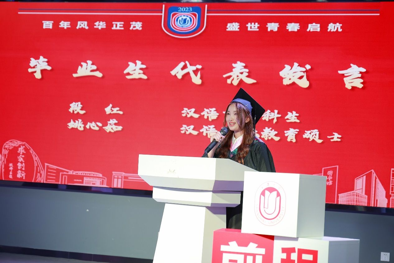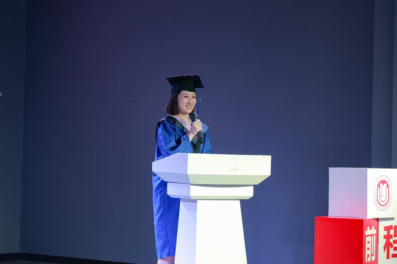 本科生代表段红(越南)、硕士毕业生代表姚心茹分享了他们在学院学习期间的收获与感悟,感恩老师们的栽培,感谢同窗情谊。
