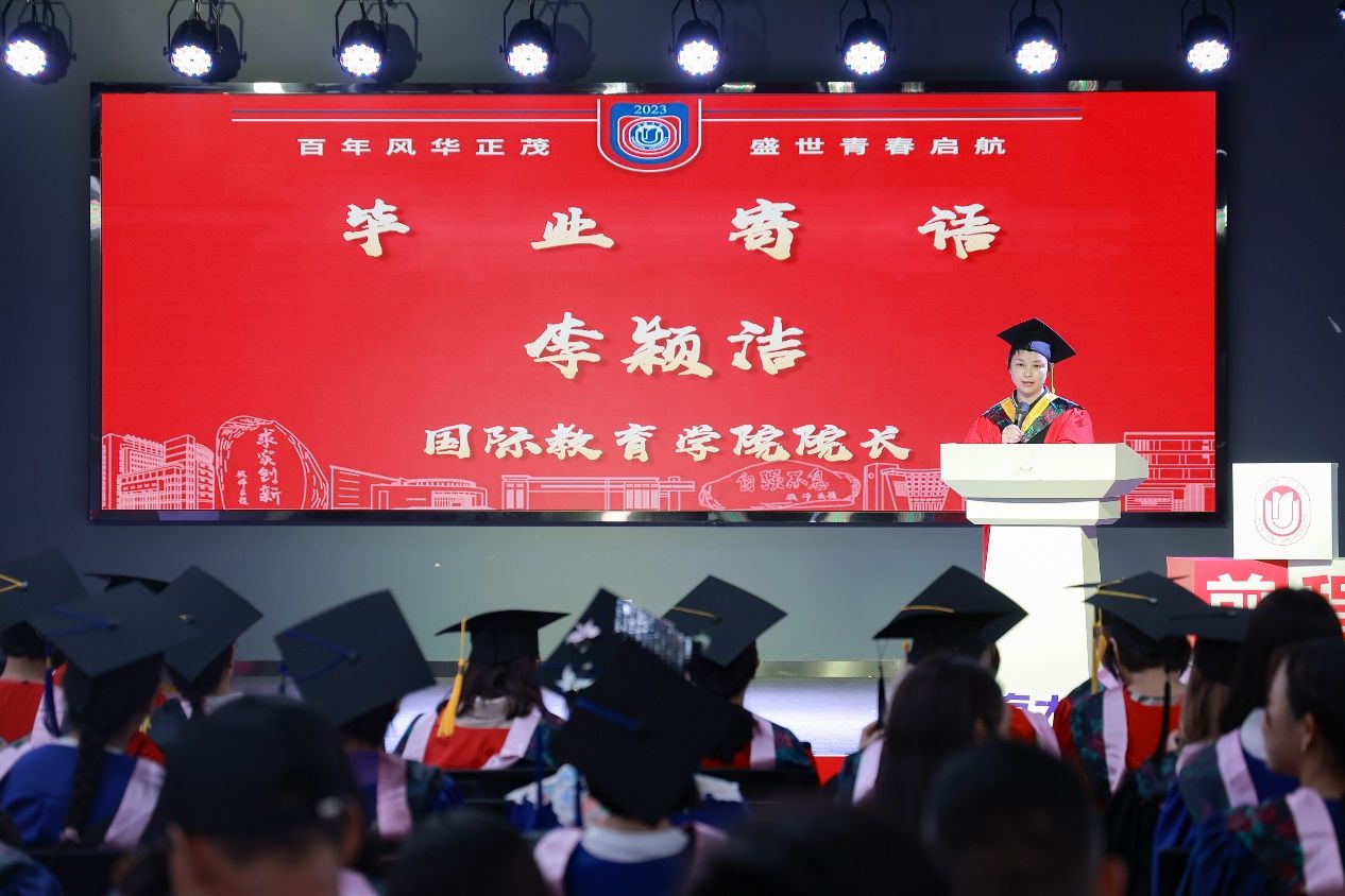 国际教育学院院长李颖洁寄语毕业生,秉持“自强不息,道济天下”的校训精神,不断突破自我,拥抱未来,心怀天下。一日上大人,一生上大情,希望大家用自己的所学所悟面对未来,走向广阔的未来,国际教育学院是毕业生们永远的家,老师们永远在这里衷心地祝福毕业生们未来的成长。