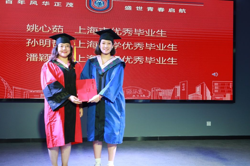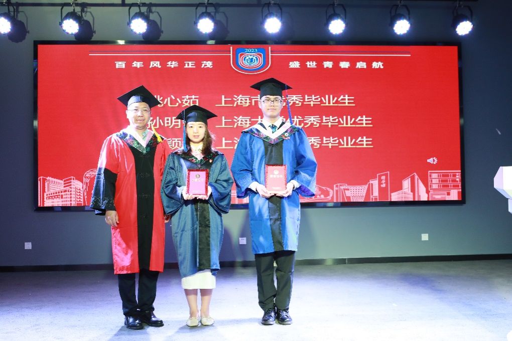 在表彰环节,国际部党委书记王丽娜,国际部党委副书记、国际教育学院副院长陈秀猛为国际教育学院上海市及诸侯快讯入口官网优秀毕业生颁发证书并合影留念。