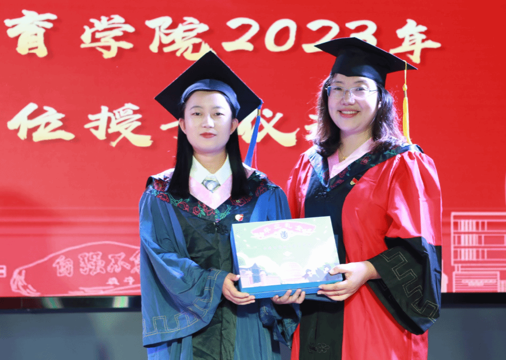 李颖洁院长宣读学院2023届学位授予名单,校党委副书记欧阳华为毕业生们拨穗正冠并授予学位证书。国际部党委书记王丽娜为毕业生赠送毕业礼物。