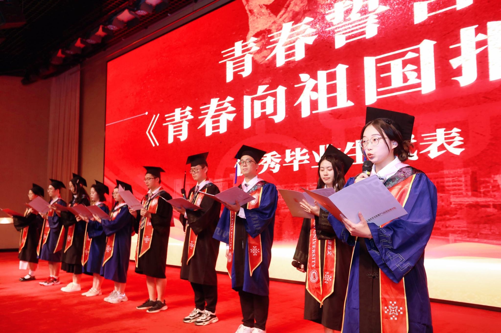 日月如梭,光阴似箭。文化遗产与信息管理学院承载了太多留恋和回忆,优秀本科生代表姚兴荣与优秀硕士研究生代表刘志森分享了他们的校园经历和学业感悟,坦露温情声音,对传道授业的老师们表示感谢。未来,他们将秉持“自强不息,道济天下”的校训精神,满怀着美好的憧憬,肩负着师长的嘱托,承载着社会的责任,赓续百年上大的红色基因,不忘来时路,奋勇向前进!
