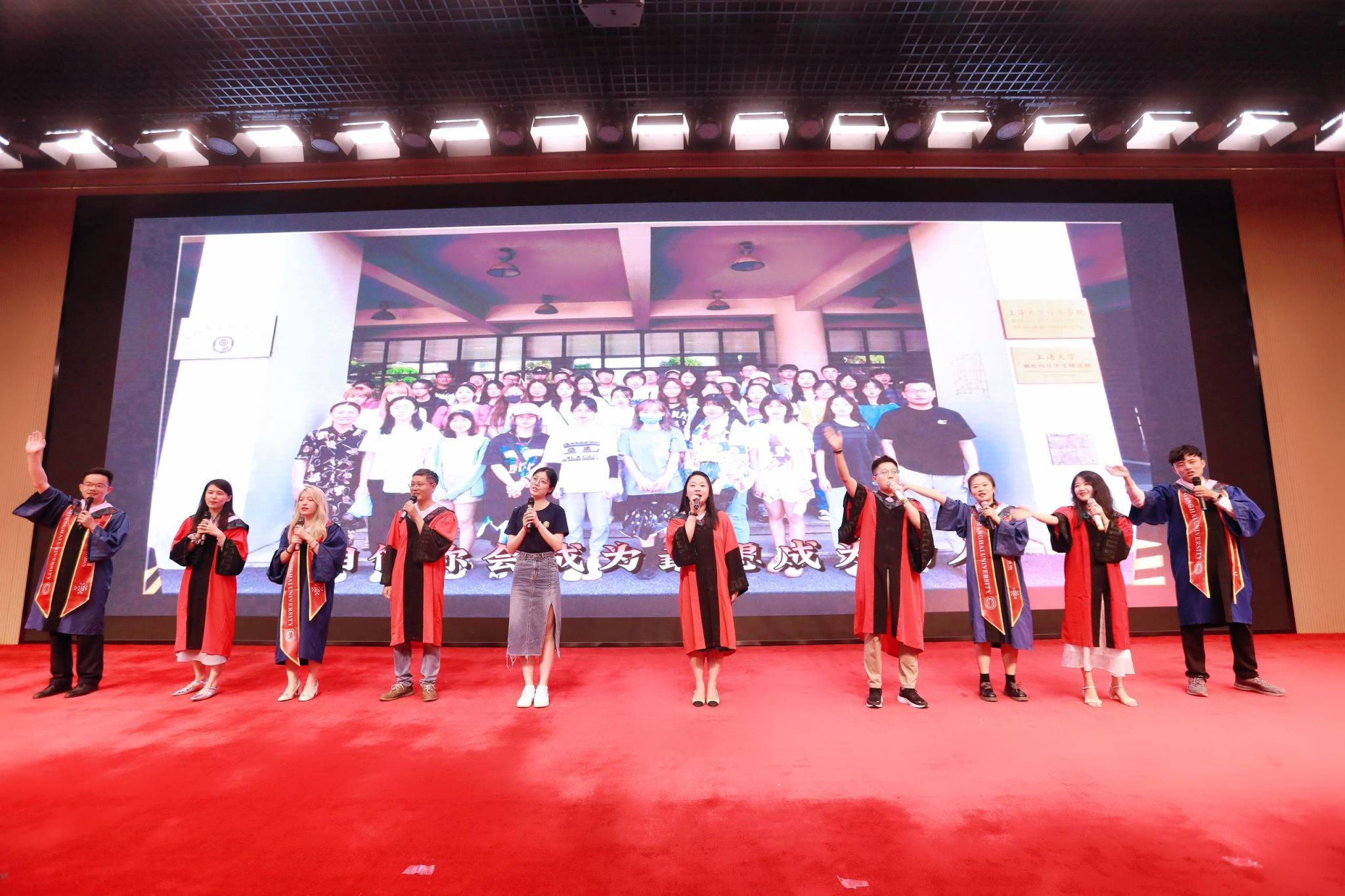 伴随音乐响起,灯光焦聚,学院党委副书记、副院长韦淑珍,杨智勇、郑晓蕖、陈晓宇、吴洁琼等教师代表与毕业生代表、在校生代表合唱《你曾是少年》,为2023届文信学院毕业生送上惊喜,一声念师长,一声念同窗。一步勇闯荡,一生难相忘。彼时曾相遇,已经留下精彩记忆,不问天有涯,来日方长。祝福每一位毕业生都能够在新的旅程中直挂云帆,乘风破浪。
