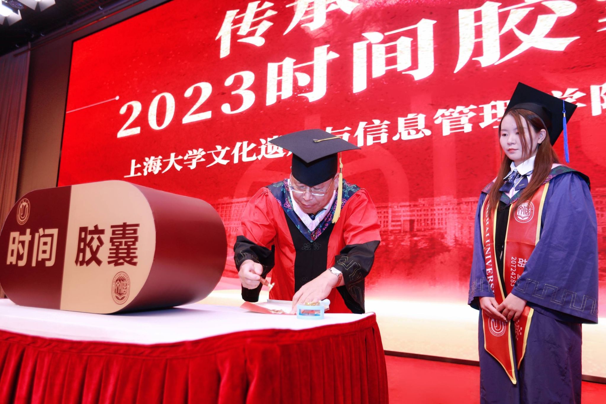 忆往昔纸短,封存不老时光。今年是“时间胶囊”陪伴文信学子的第十四年,小小的信封,包含的是毕业生们的真诚心声,点亮的是心中的期待与希望。在2023届文信学院毕业生的见证下,学院党委书记丁华东教授将2023届文信学院毕业生的梦想卡片封存在档案袋,加盖火漆印章,投入时间胶囊,相约十年后共同开启时光纪念册,追忆逝水年华。
