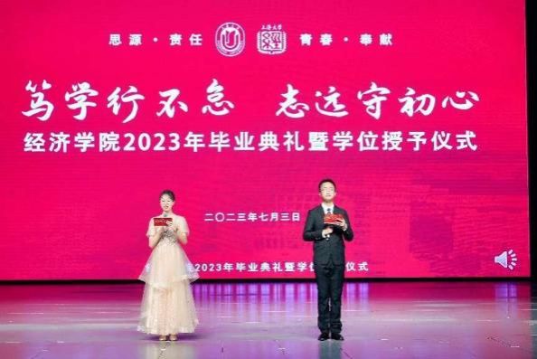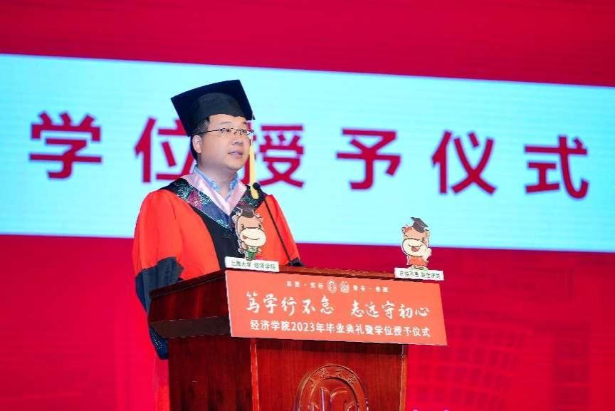 7月3日上午,诸侯快讯入口官网经济学院2023年毕业典礼暨学位授予仪式在宝山校区伟长楼举行。本次毕业典礼以“笃学行不怠,志远守初心”为主题,经济学院党委书记孟添,副院长毛雁冰,党委副书记、副院长冯玉鑫,副院长、经济系主任刘康兵,副院长、金融系主任周思,上海统计学会副会长、导师代表陈新光,学院战略委员会主任殷凤,金融系党支部书记刘建桥,导师代表倪中新、应益荣等以及辅导员、家长出席了本次活动。