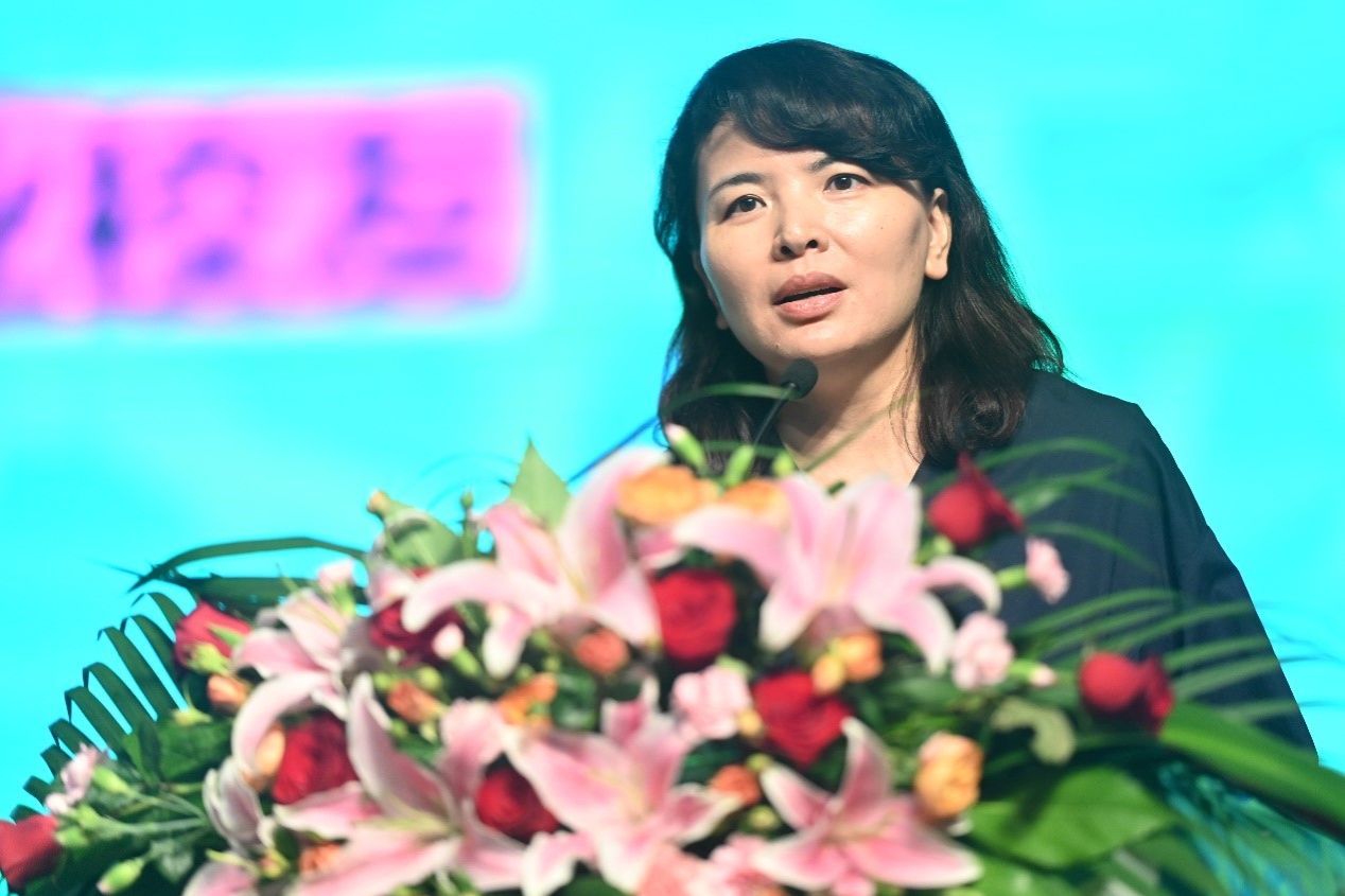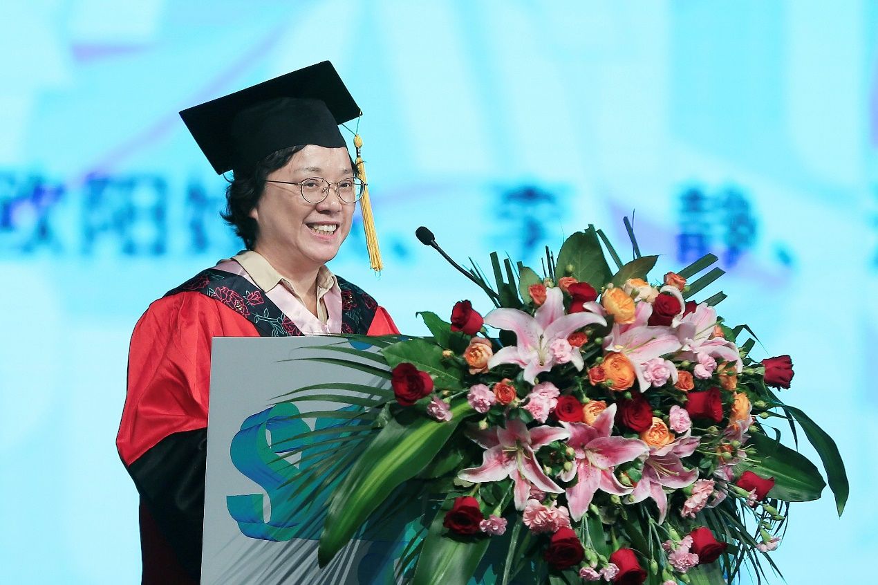 1995届艺术设计专业校友、上海市政工程设计研究总院(集团)有限公司景观专业总工程师钟律作为校友代表发言,她阐释了艺术的意义和价值,祝愿同学们在艺术的无界和跨界中绽放,为这个世界带来美与启示。