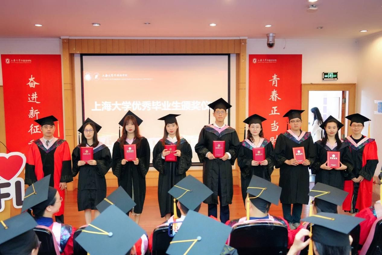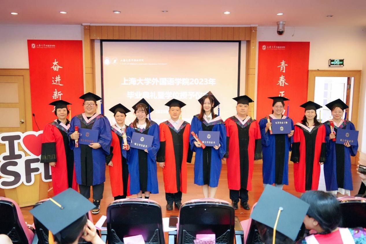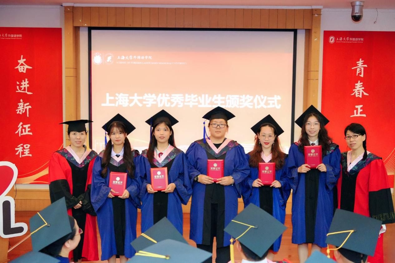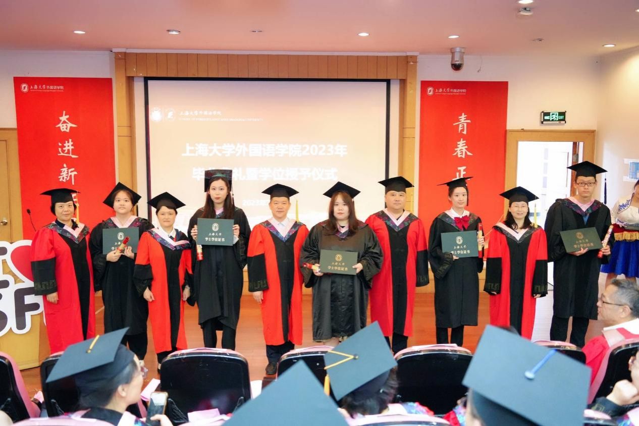时光流转,凤凰花开,让我们将对外国语学院的记忆留在这个盛夏,带着心中的爱与感激,迎接未来的机遇和挑战,只争朝夕,不负韶华,扬帆起航,将青春华章书写在祖国大地上。今日你以上大为荣,明日上大以你为荣,外国语学院祝全体毕业生毕业快乐、前程似锦!