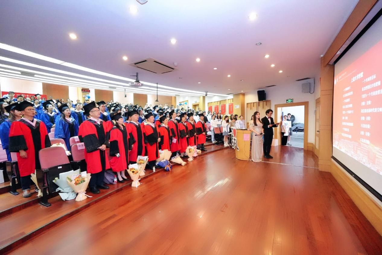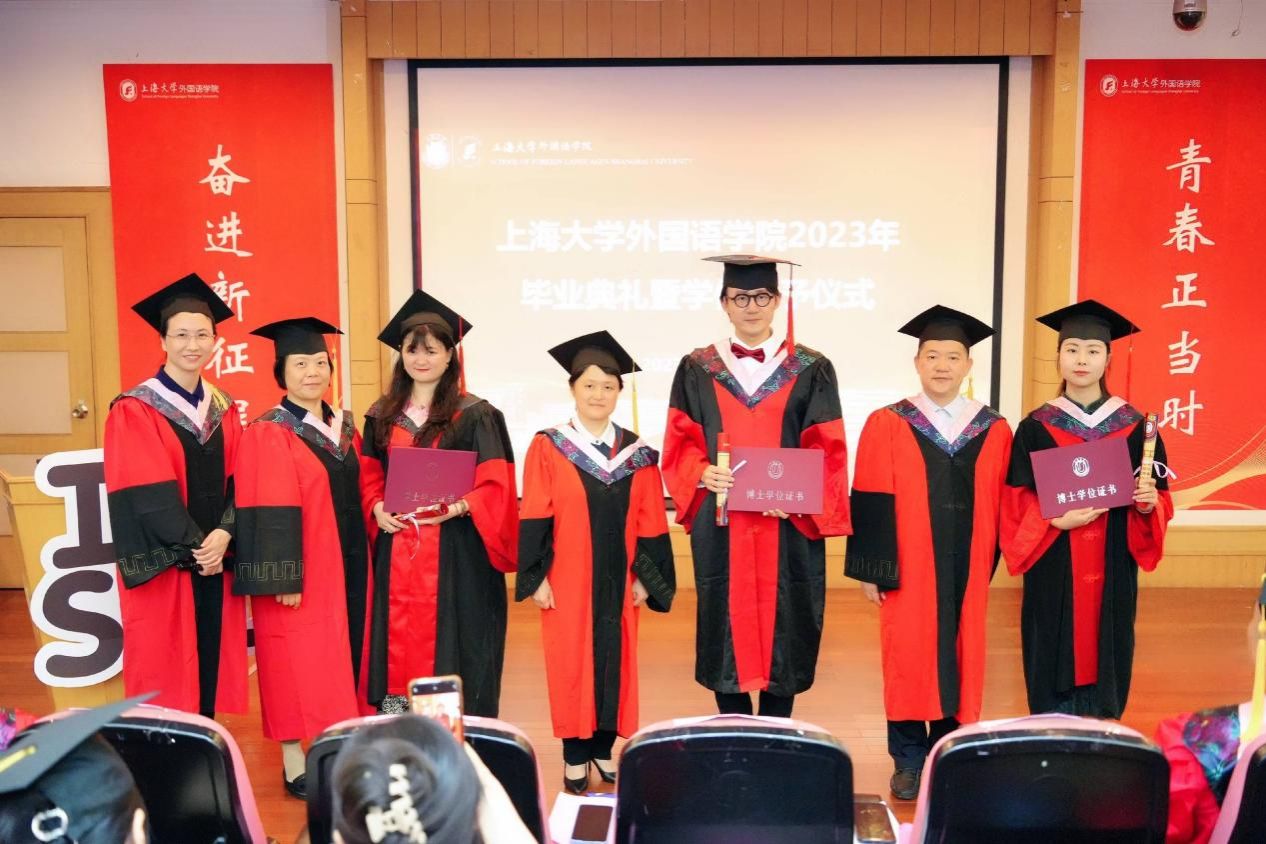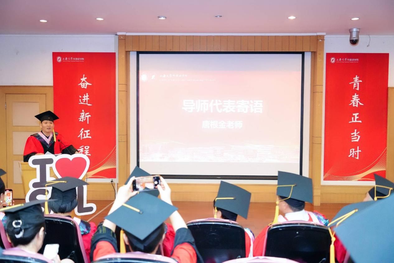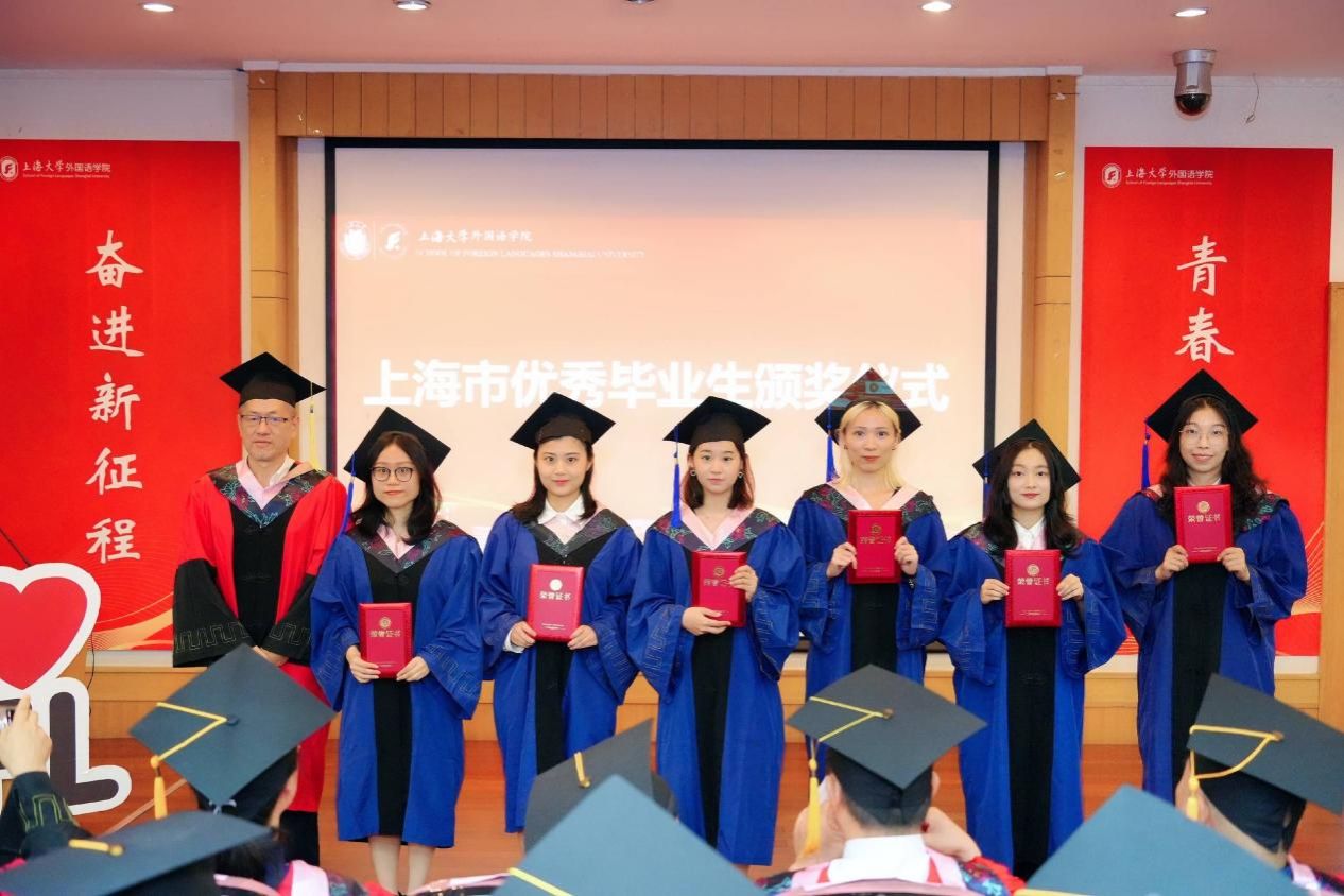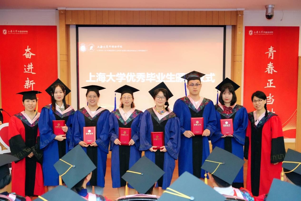 时光流转,凤凰花开,让我们将对外国语学院的记忆留在这个盛夏,带着心中的爱与感激,迎接未来的机遇和挑战,只争朝夕,不负韶华,扬帆起航,将青春华章书写在祖国大地上。今日你以上大为荣,明日上大以你为荣,外国语学院祝全体毕业生毕业快乐、前程似锦!