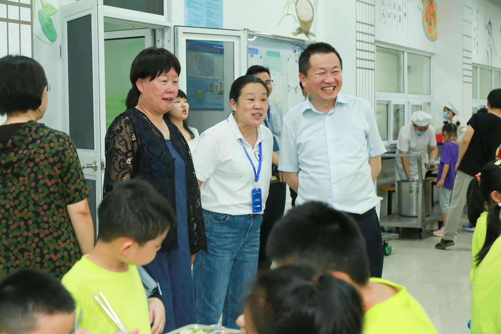 欧阳书记和刘处长首先到各个班级实地查看了硬件设施、课程设置、安全保障、师资配备等情况,并来到早读课、体育课、舞蹈课等,亲身感受课堂的活力与热情。紧接着,欧阳书记亲切慰问了奋战在成长营一线的班主任老师、任课教师、后勤保障人员及相关工作人员,并对他们的无私奉献表示诚挚的感谢。