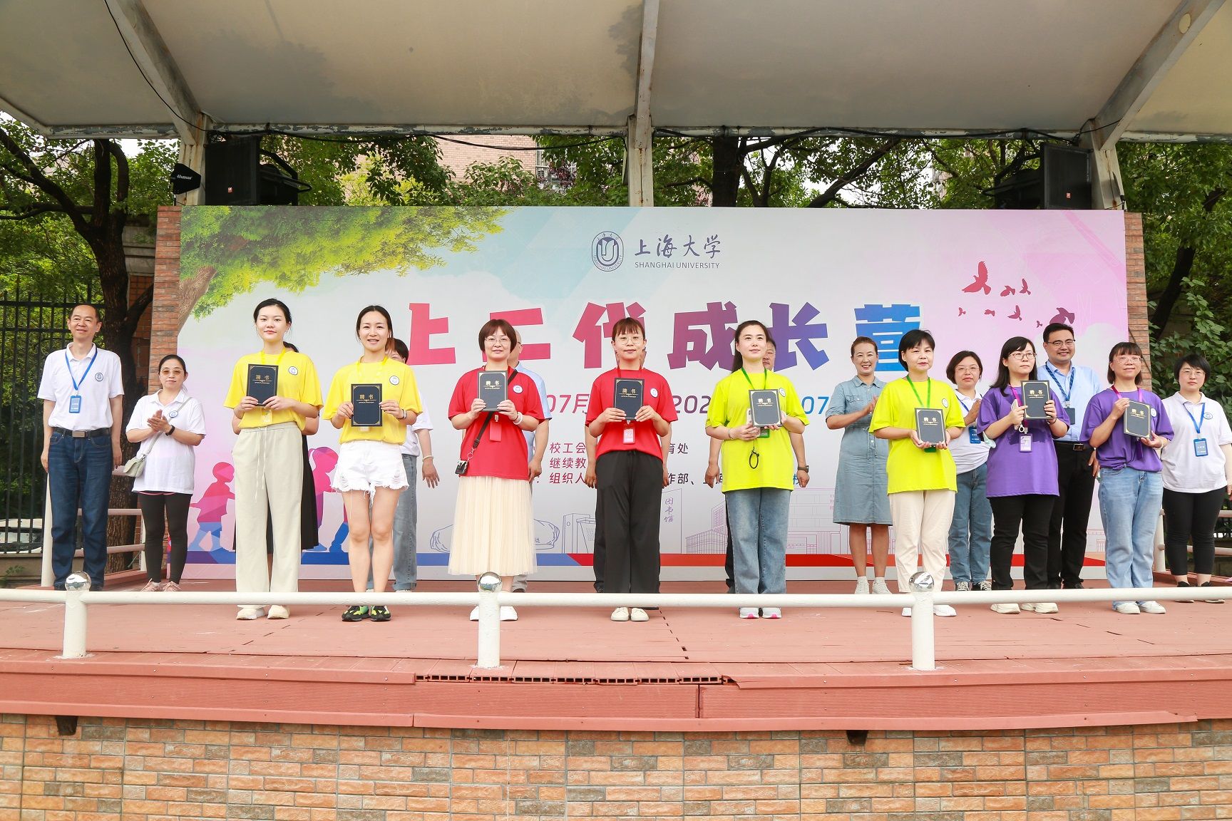 八个班级的八位营员代表上台,分享小朋友们的独特感悟。校工会常务副主席、妇委会常务副主任顾莹,继续教育学院院长周丽昀共同为小营员代表颁发了结营证书。