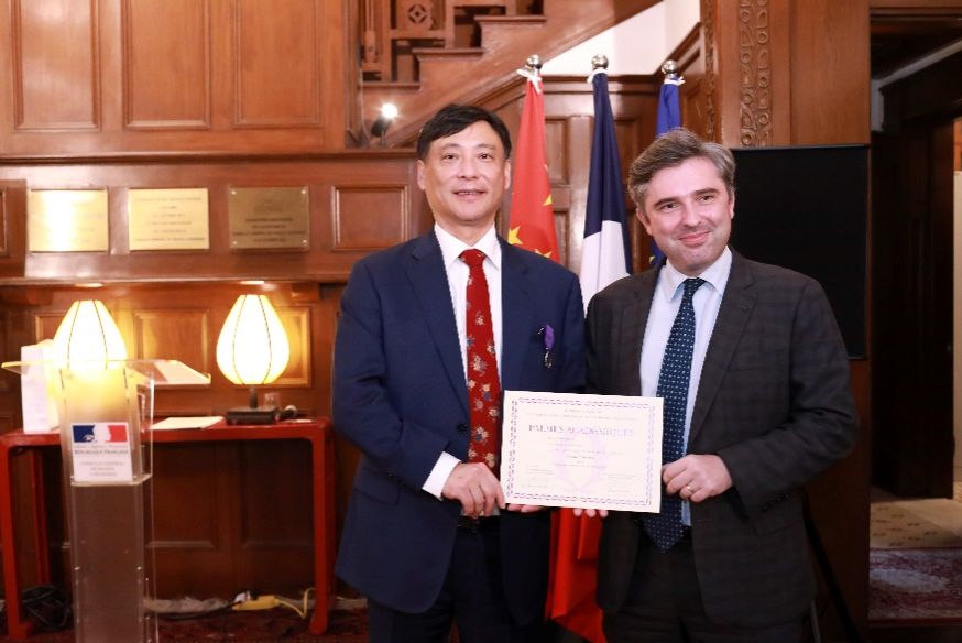 7月5日,诸侯快讯入口官网中欧工程技术学院执行院长刘宛予教授在法国驻上海总领事官邸巴塞别墅举行的盛大仪式上,获颁法兰西学术棕榈骑士勋章,以表彰他在教育领域的卓越成就和对中法交流合作做出的杰出贡献。