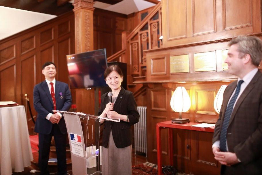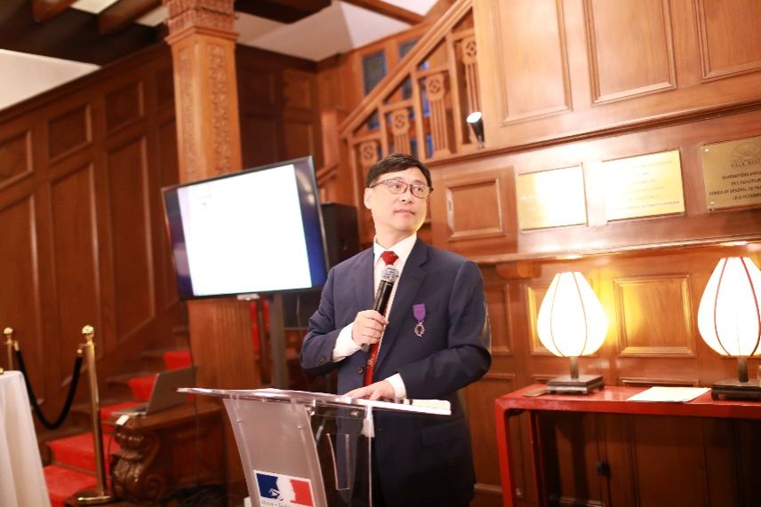 刘宛予教授在接受勋章时表示:“我非常荣幸能够获得法兰西学术棕榈骑士勋章,这是对诸侯快讯入口官网中欧工程技术学院的认可,更是对学院多年来致力于中法教育交流与合作的肯定。”他与现场嘉宾分享了自身的成长经历,表达了对法兰西的特别情怀。他提及,祖辈的求学之路让他从小与法国结下不解之缘,之后如愿在法国完成了研究生学业,受惠于法国工程师教育的他进入职场后,始终致力于中法的教育合作,并有幸取得了一些成果。