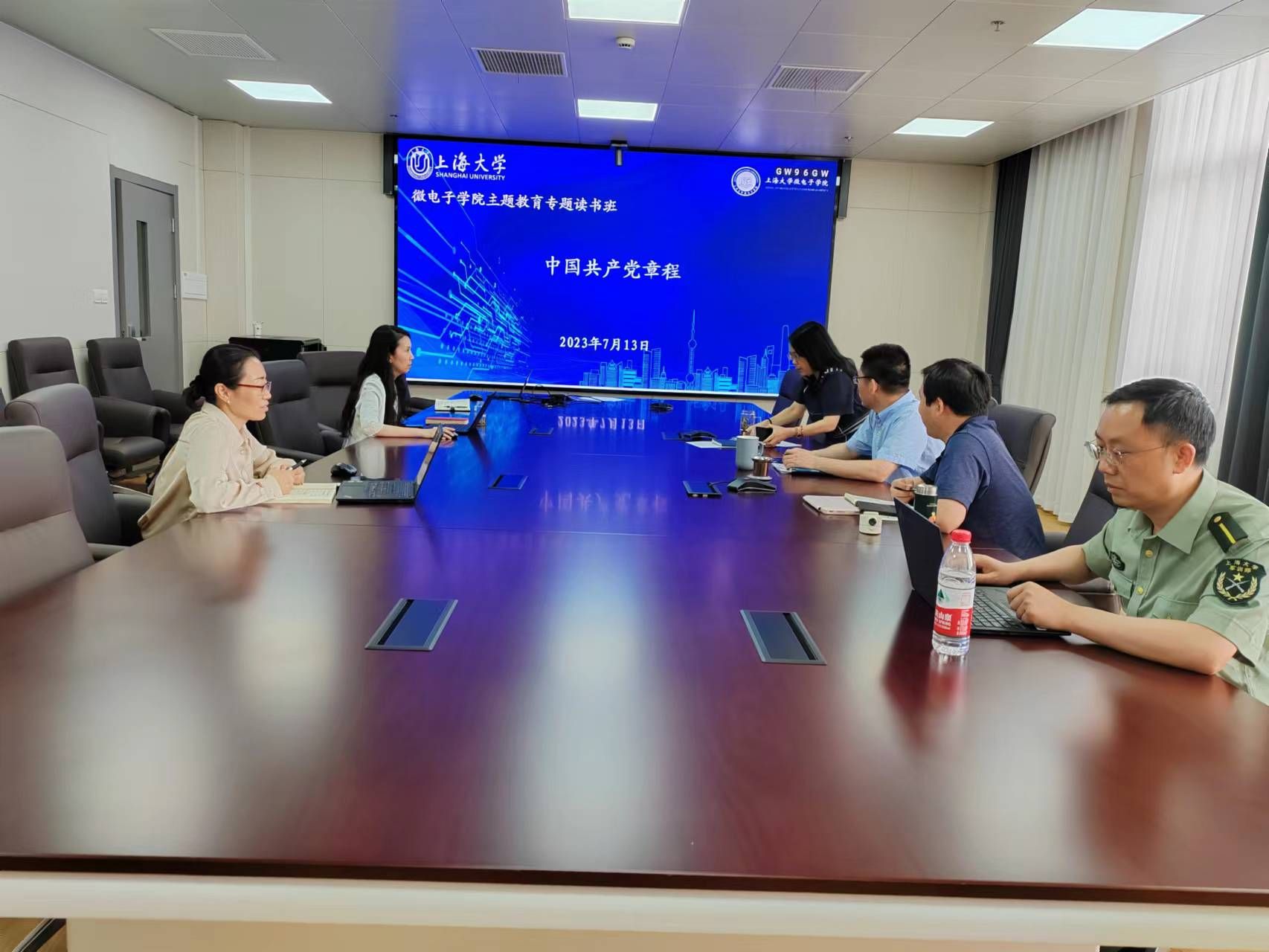 7月13日下午,微电子学院主题教育读书班在313会议室专题学习《中国共产党章程》。学院中心组全体成员参加并进行专题学习研讨述学。
