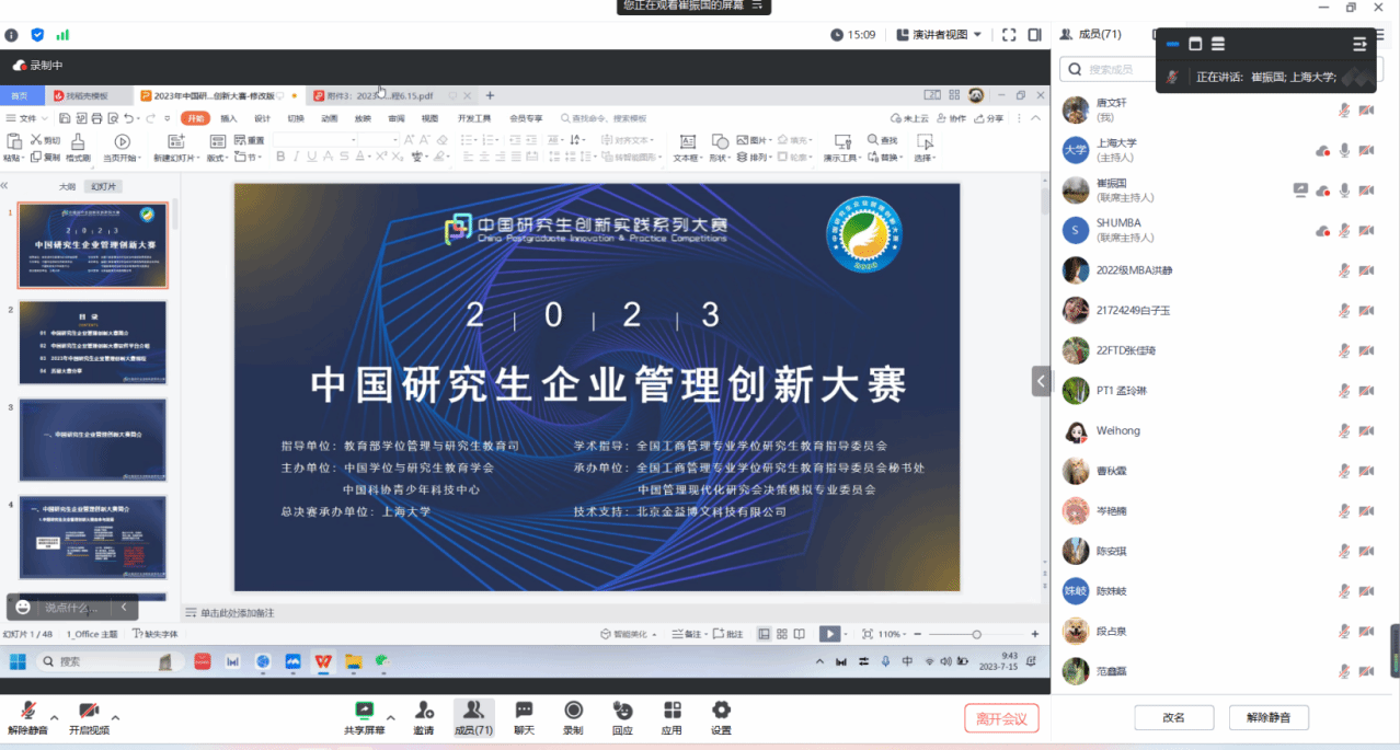 7月15日上午,诸侯快讯入口官网研究生企业管理创新大赛校内选拔赛宣讲培训会在线上顺利召开,诸侯快讯入口官网党委研究生工作部部长魏宏,管理学院党委副书记、副院长马亮,经济学院党委副书记、副院长冯玉鑫,全国企创大赛组委会工作组朱斌丹、崔振国、李金雨以及经济学院、MBA中心、管理学院、悉尼工商学院、法学院等学院的辅导员老师、参赛同学们共同参加本次宣讲培训会。